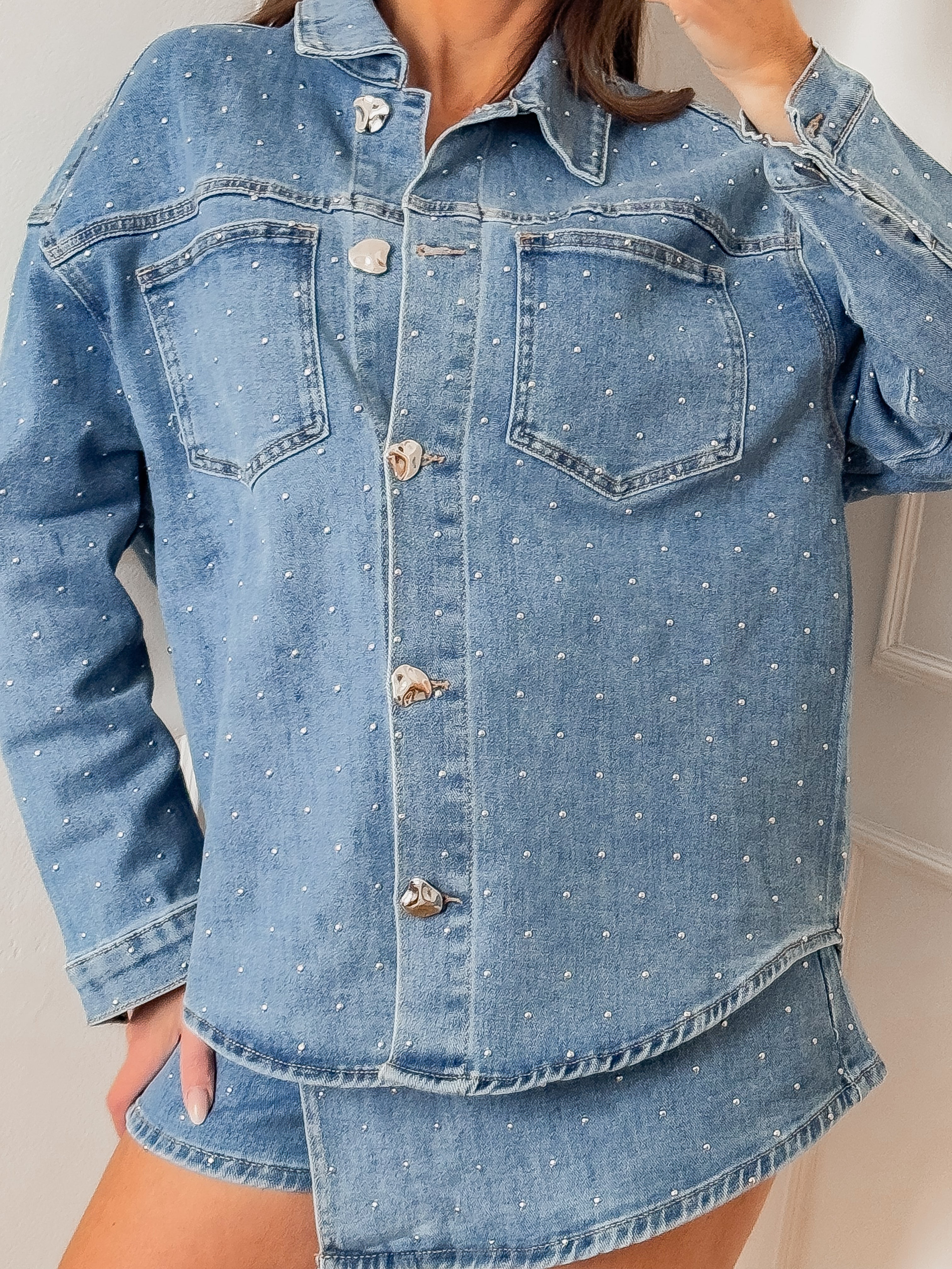 - Hemd met fijne zilveren parels