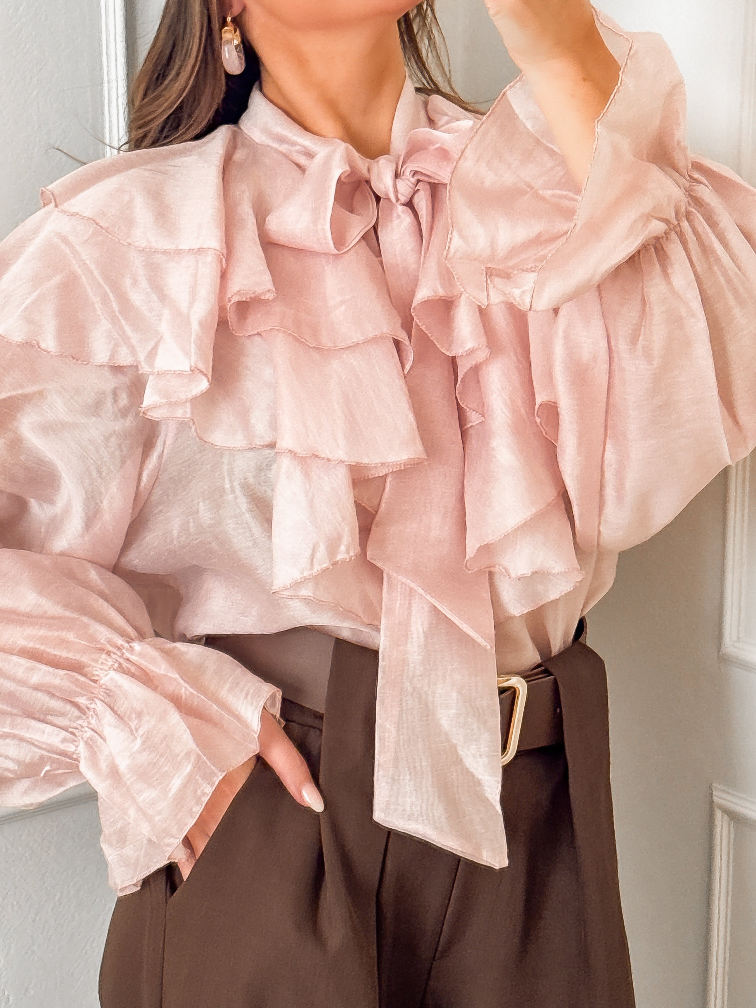 Pink Frill Bow Blouse
