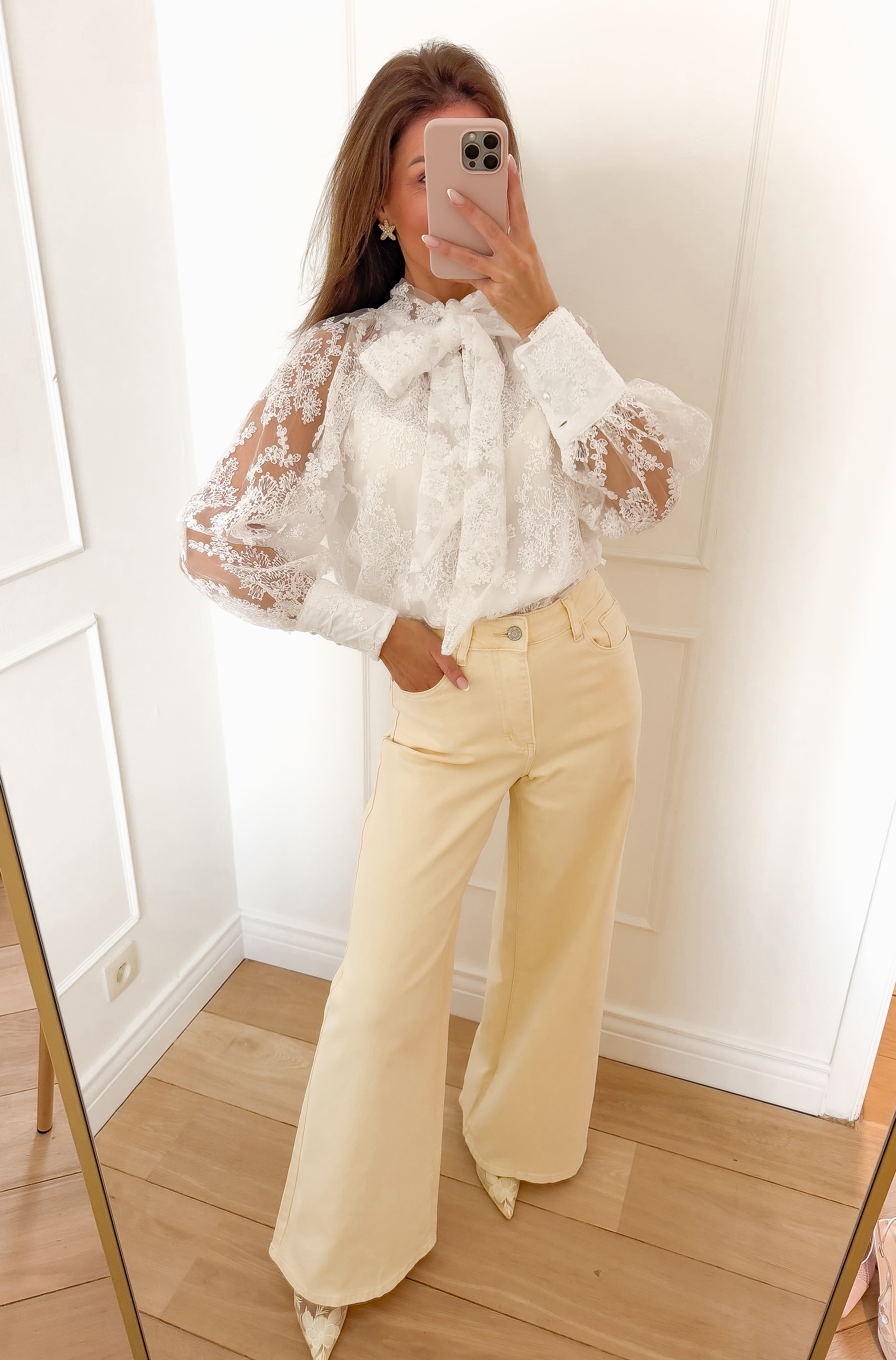 White Lace Bow Blouse