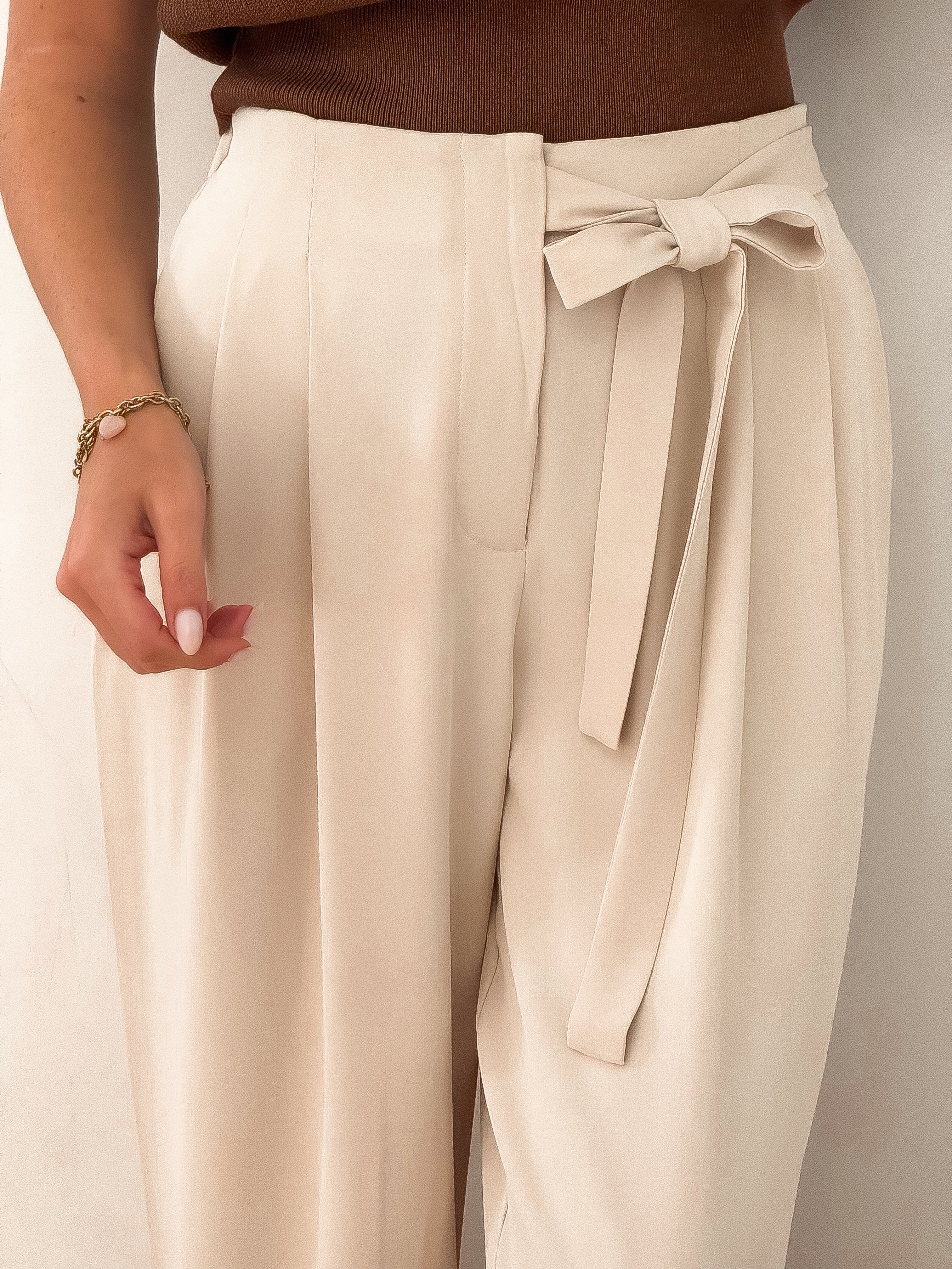Beige Bow Trousers