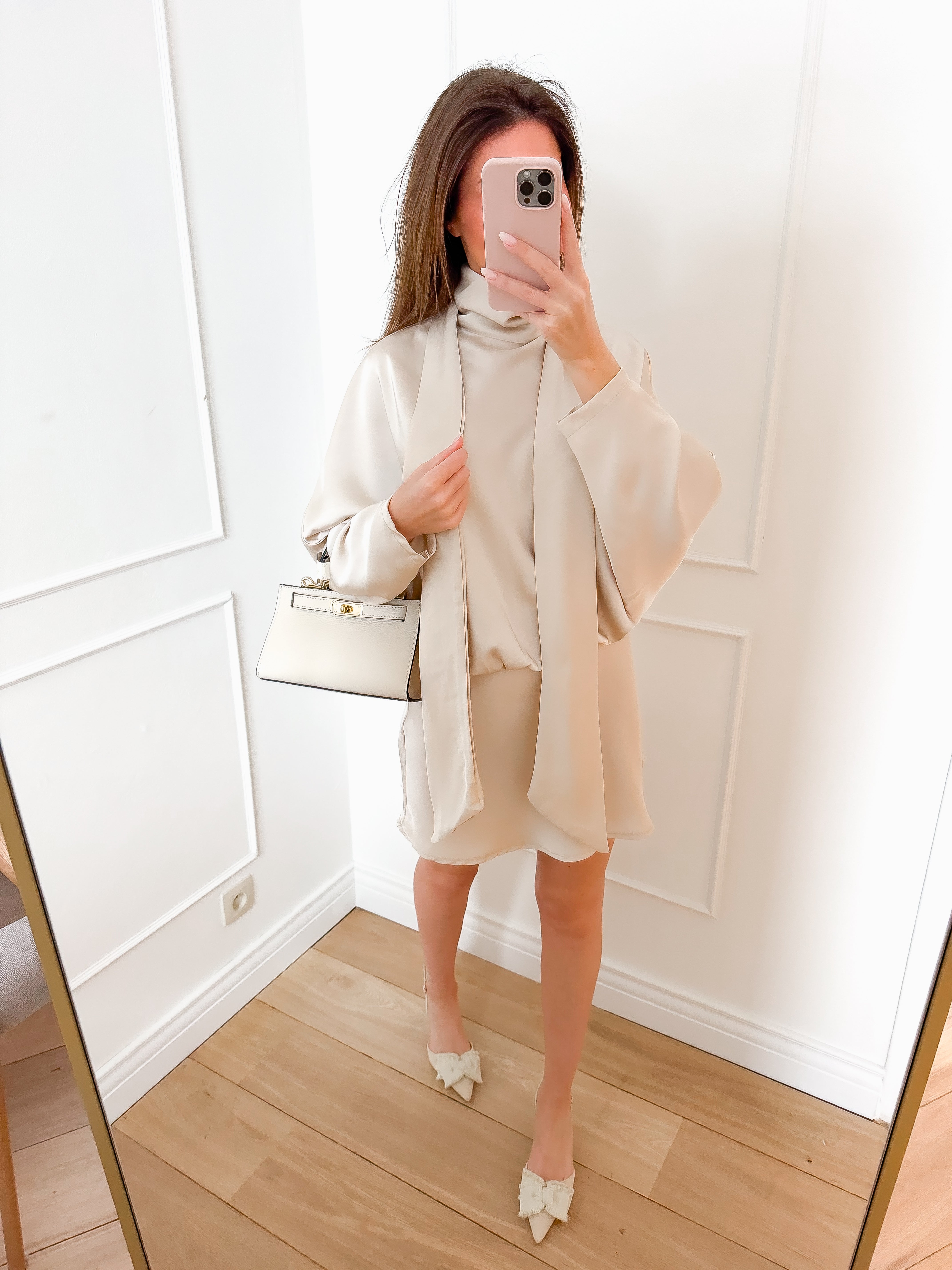 • Het sjaaltje hangt vast aan het kleed en kan gestrikt worden naar wens