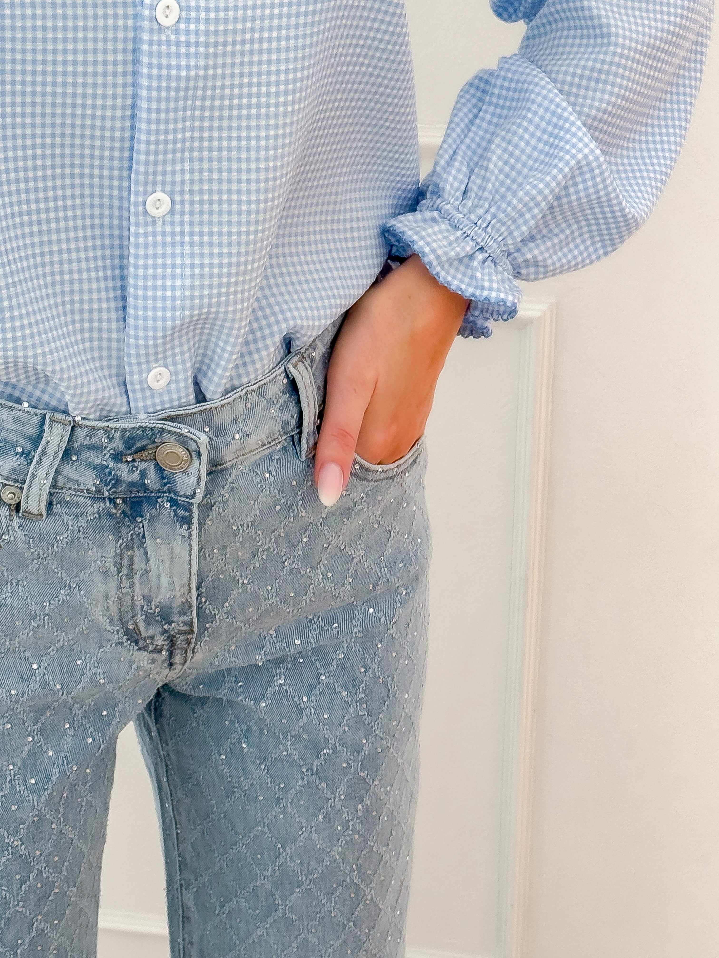 Blue Vichy Frill Blouse