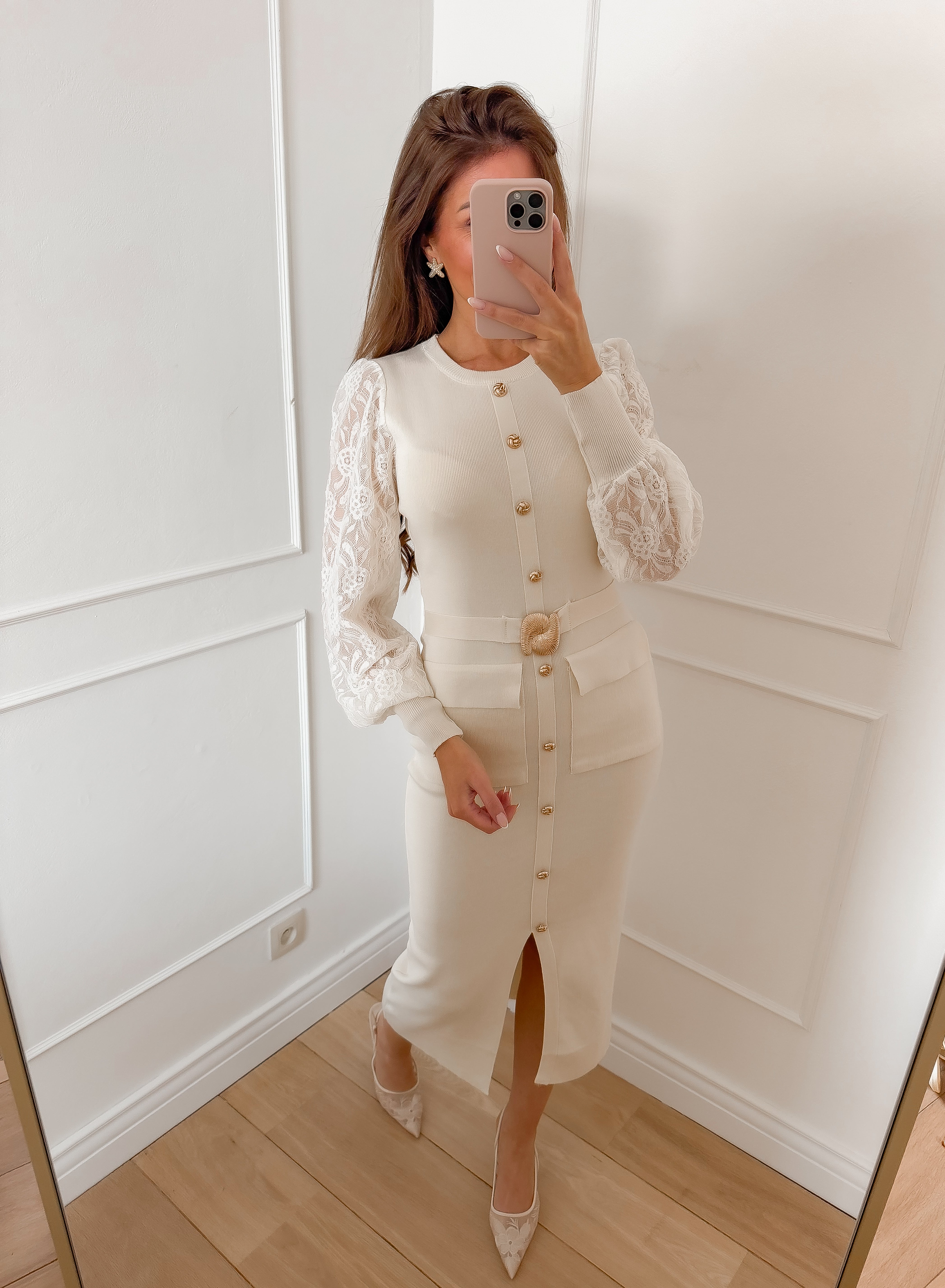 Beige Lace Split Dress