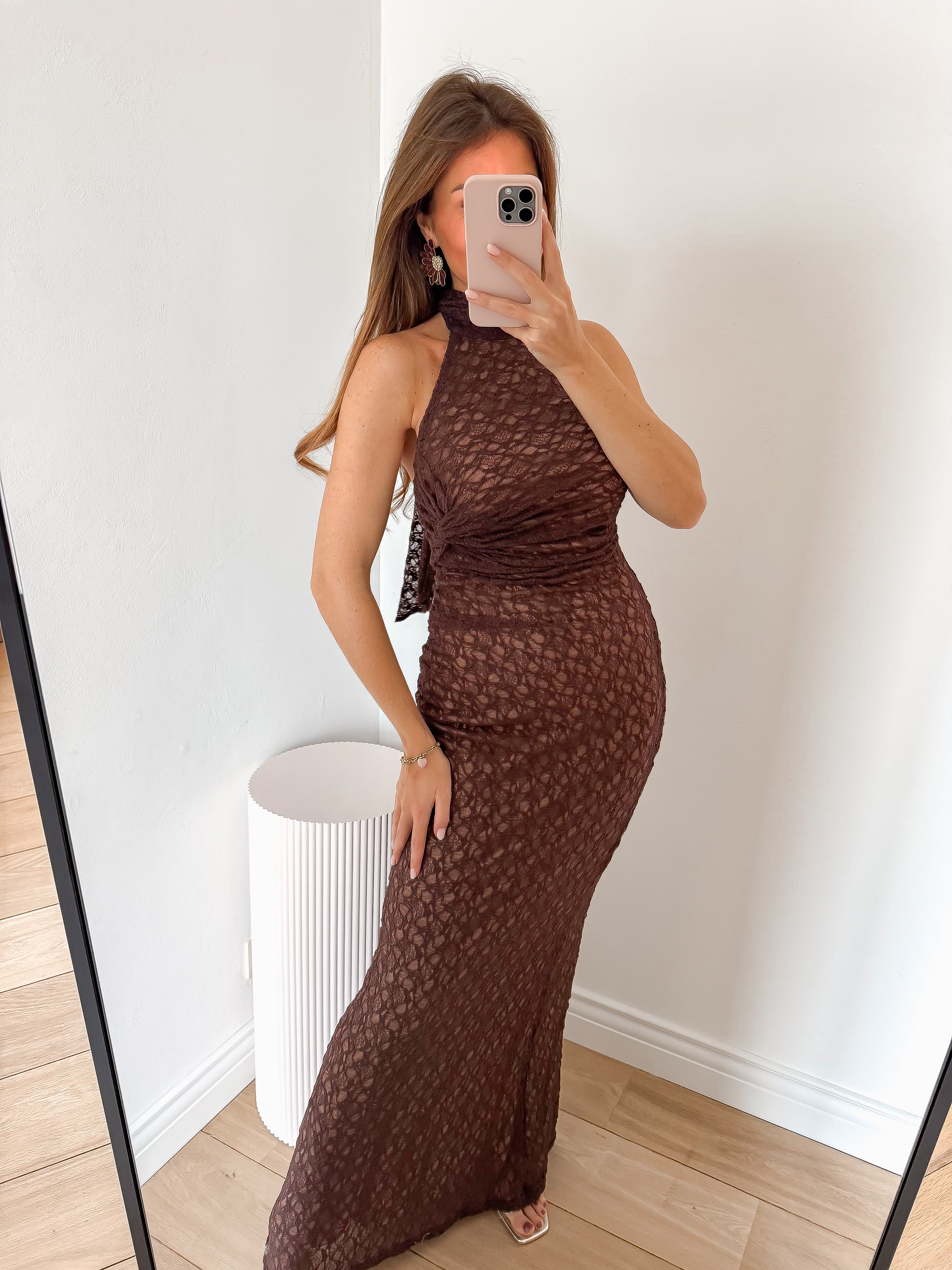 Brown Long Lace Bow Dress