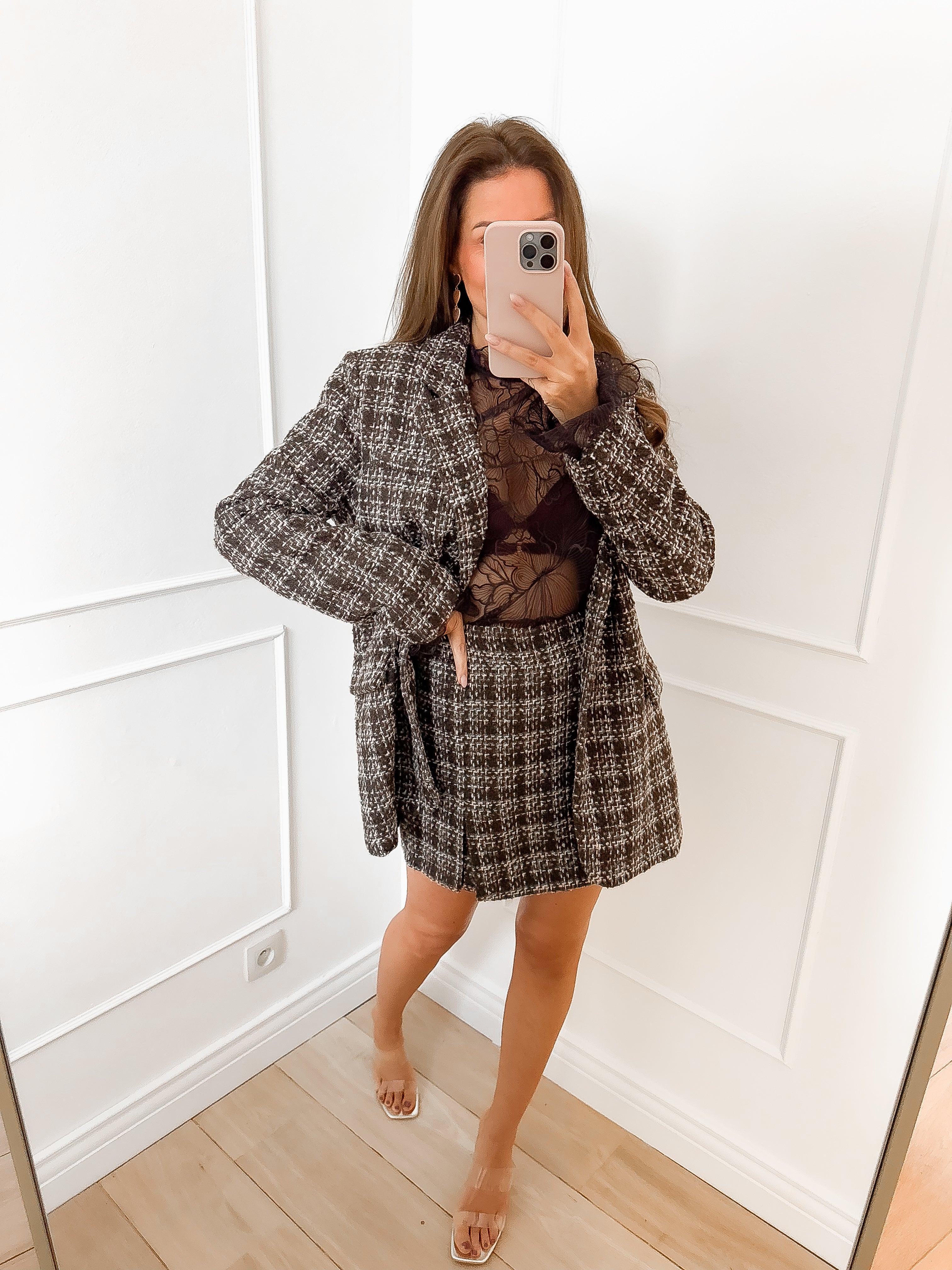 Brown Shimmer Tweed Skort