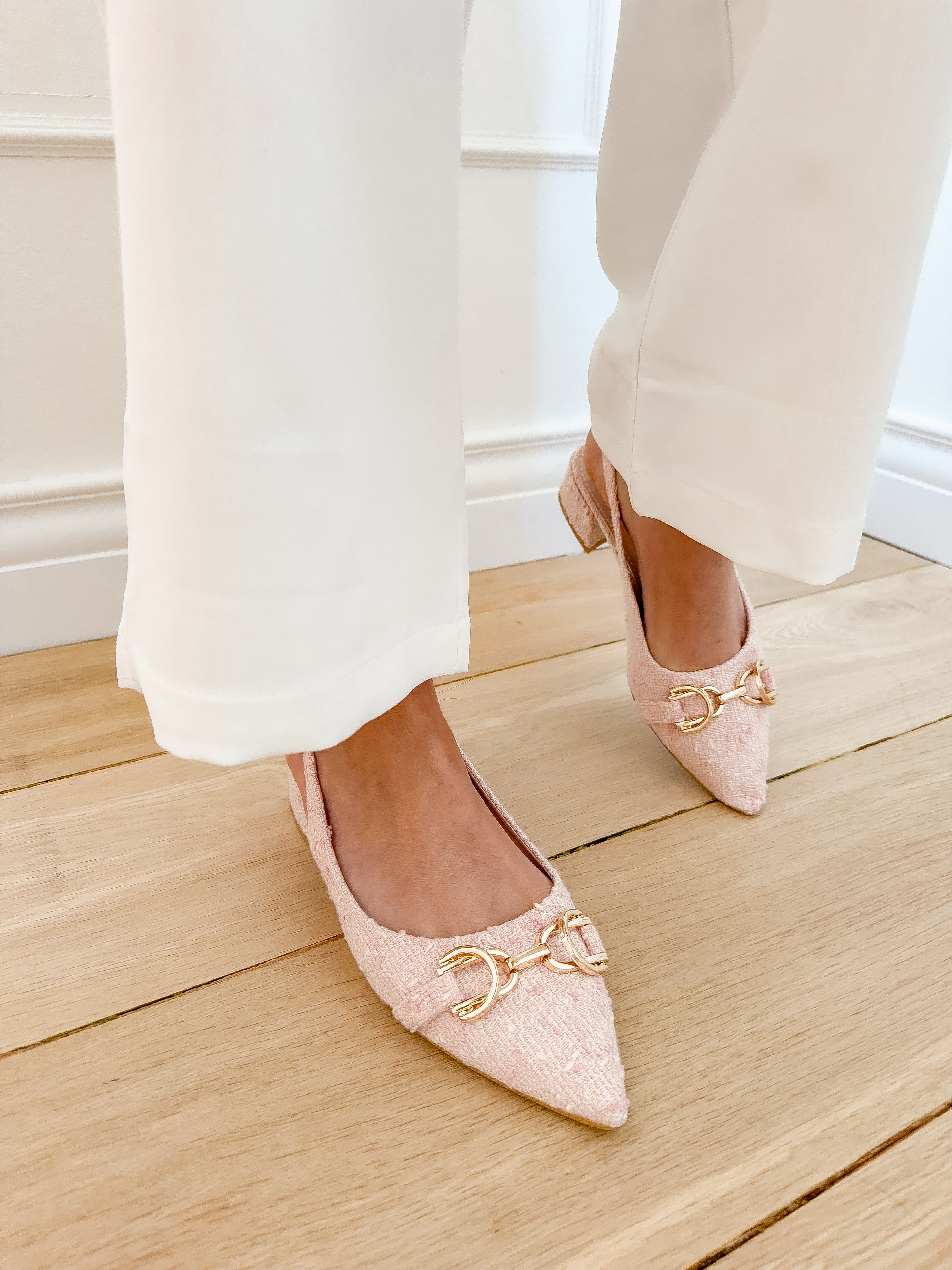 Pink Tweed Horsebit Heels