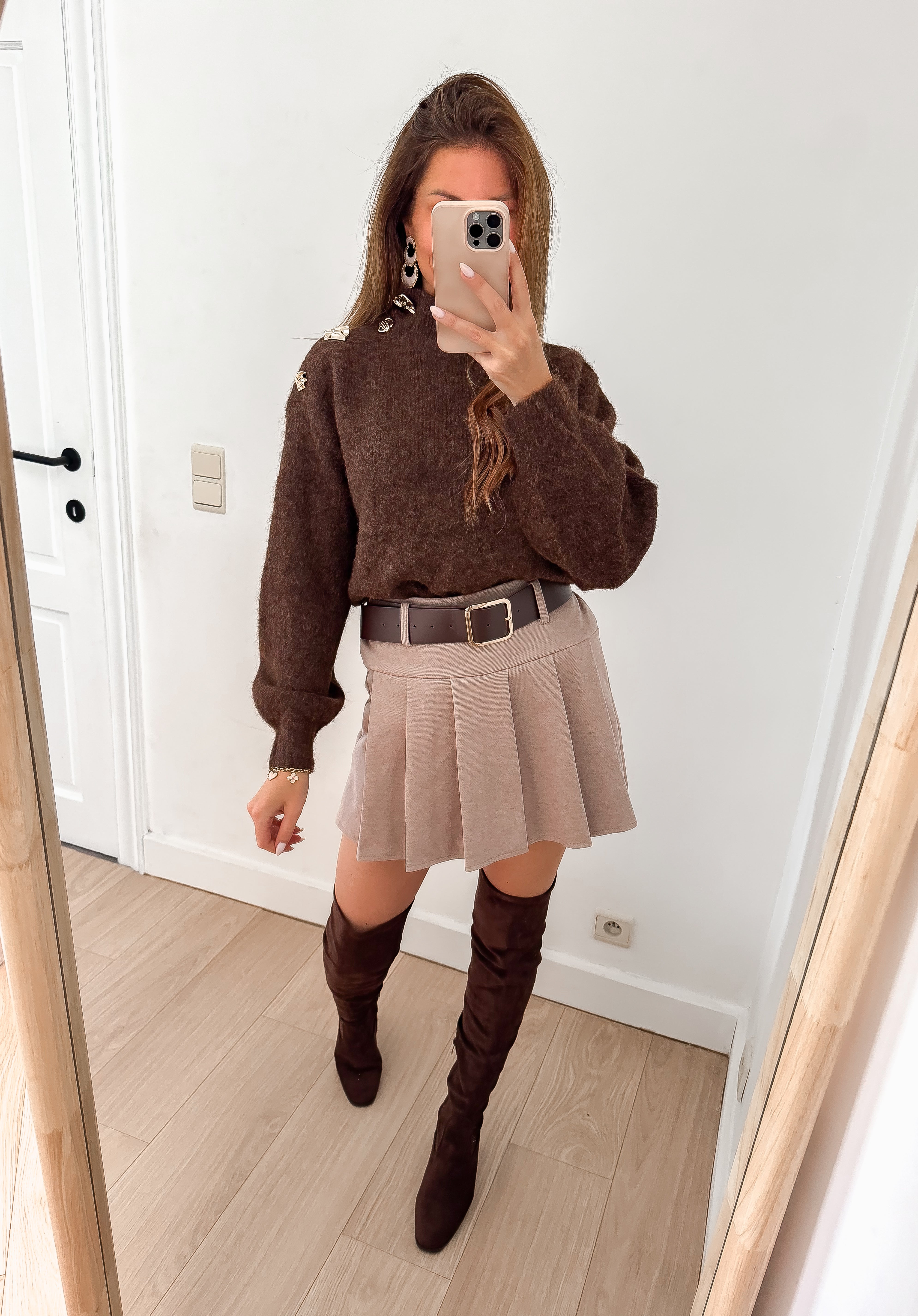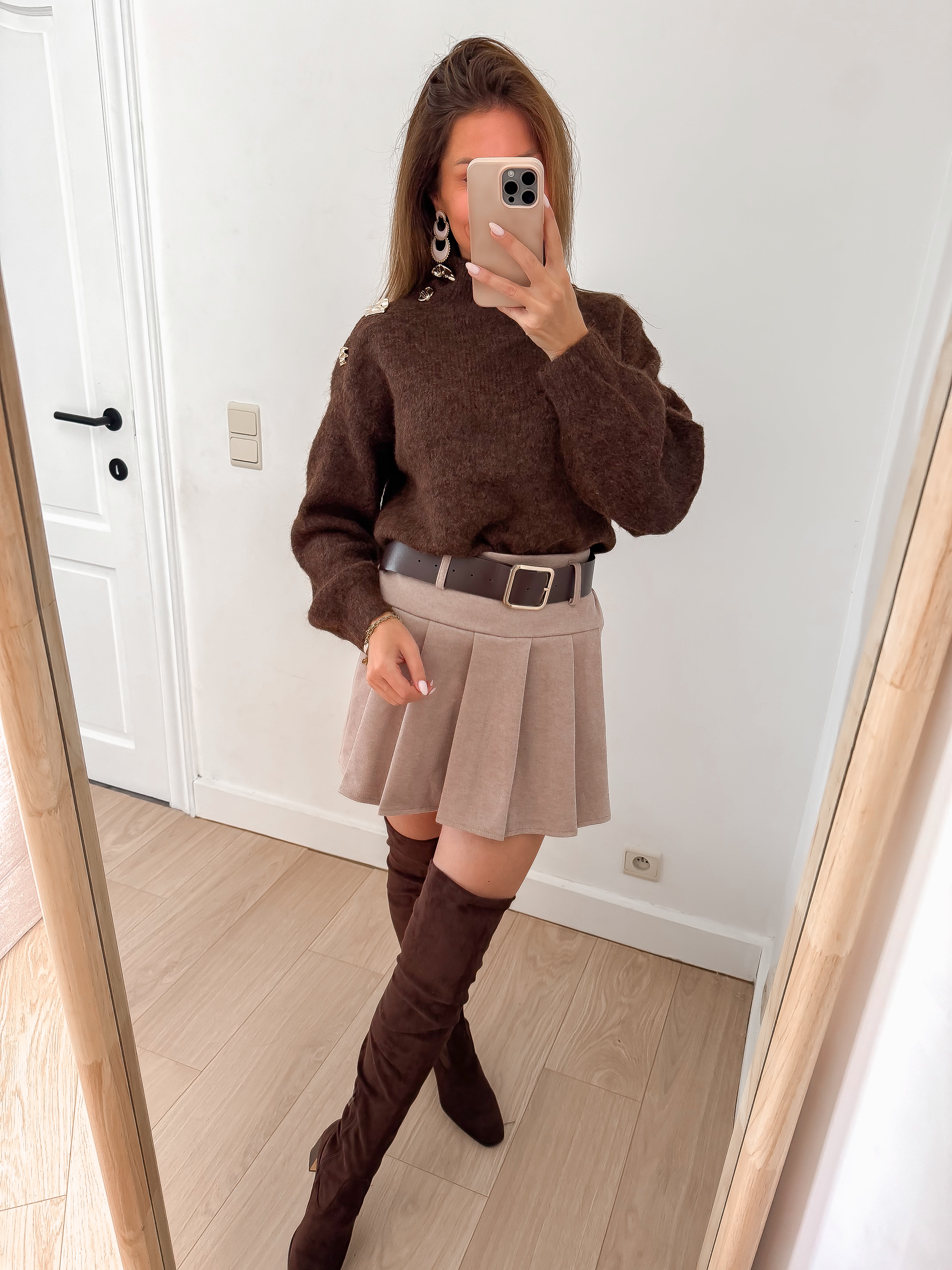 Taupe Plissé Belt Skort
