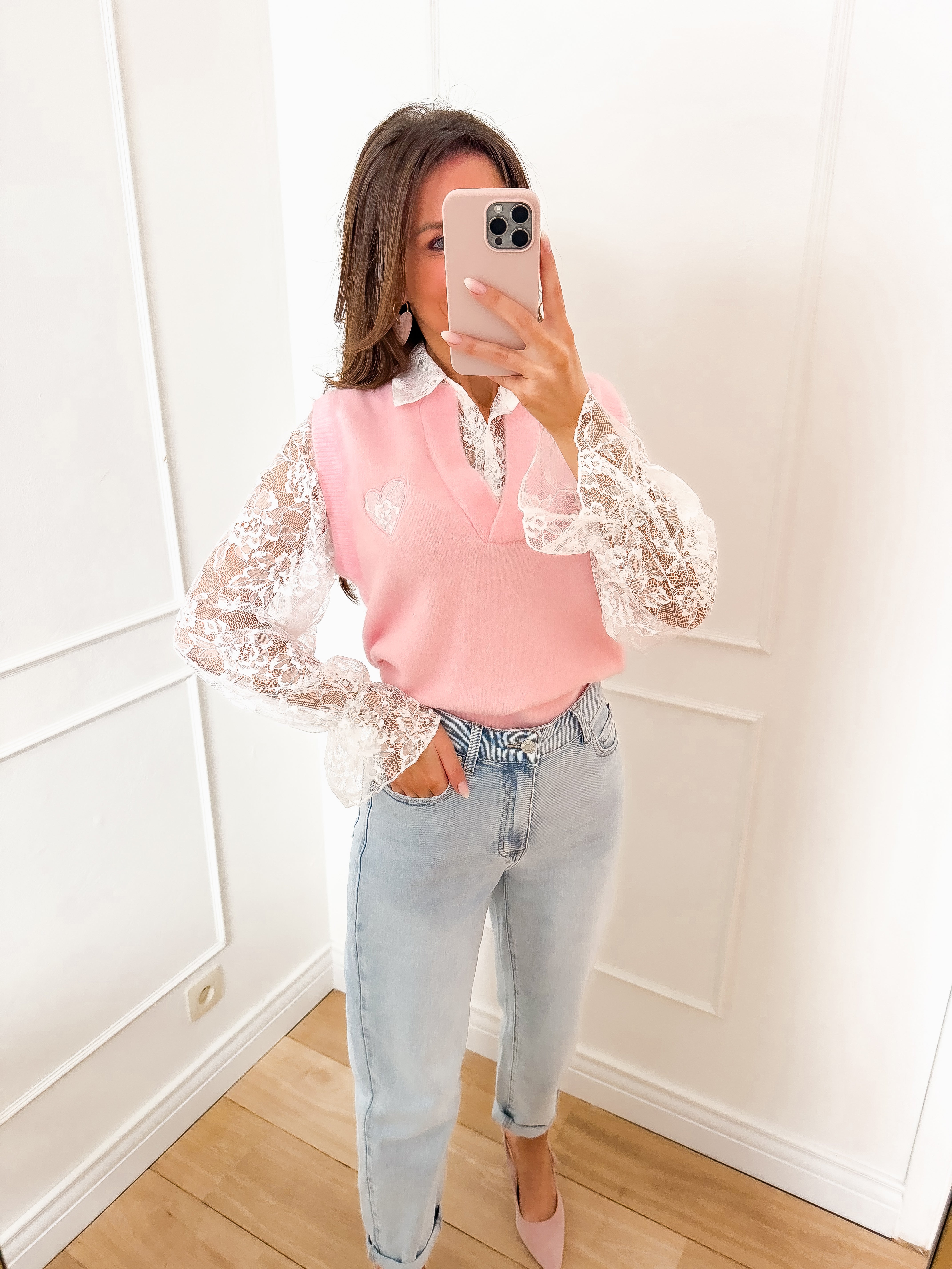 Pink/White Lace Sweater