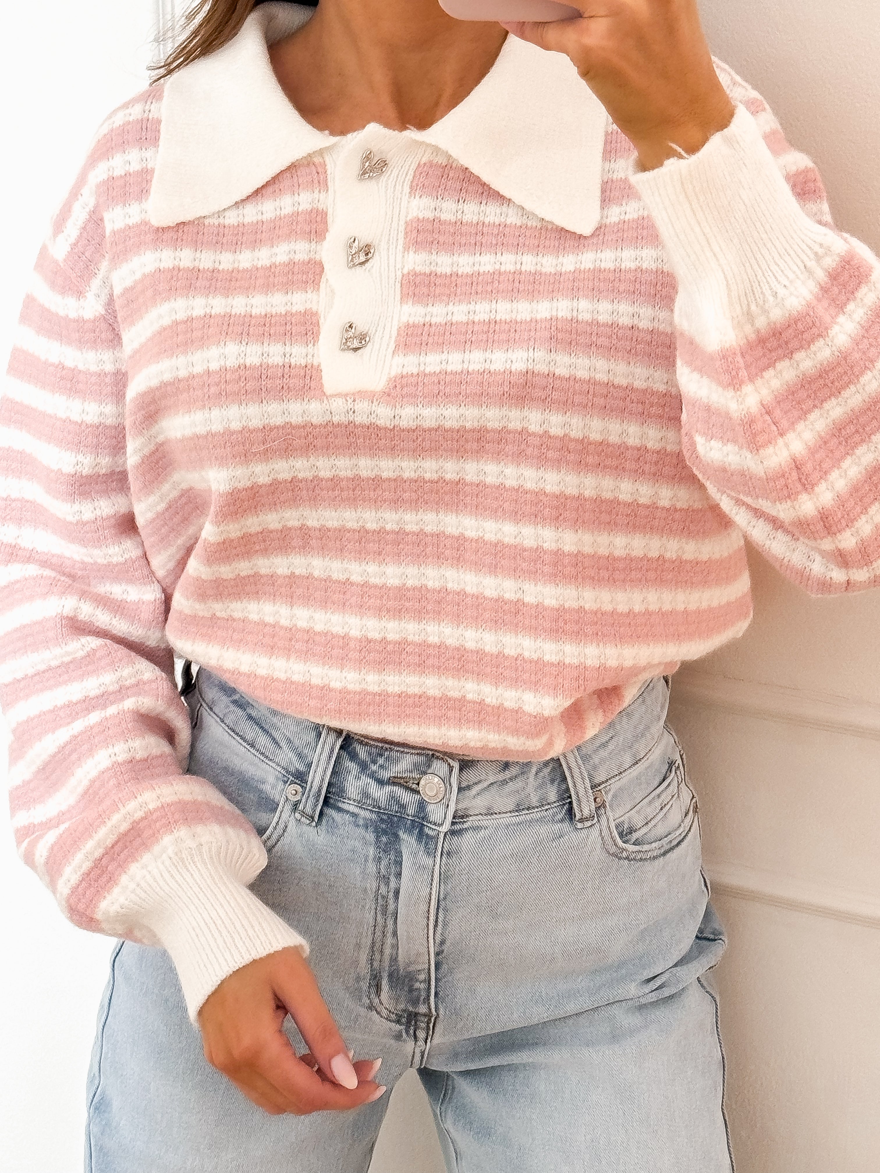 Pink Hearts Stripe Sweater