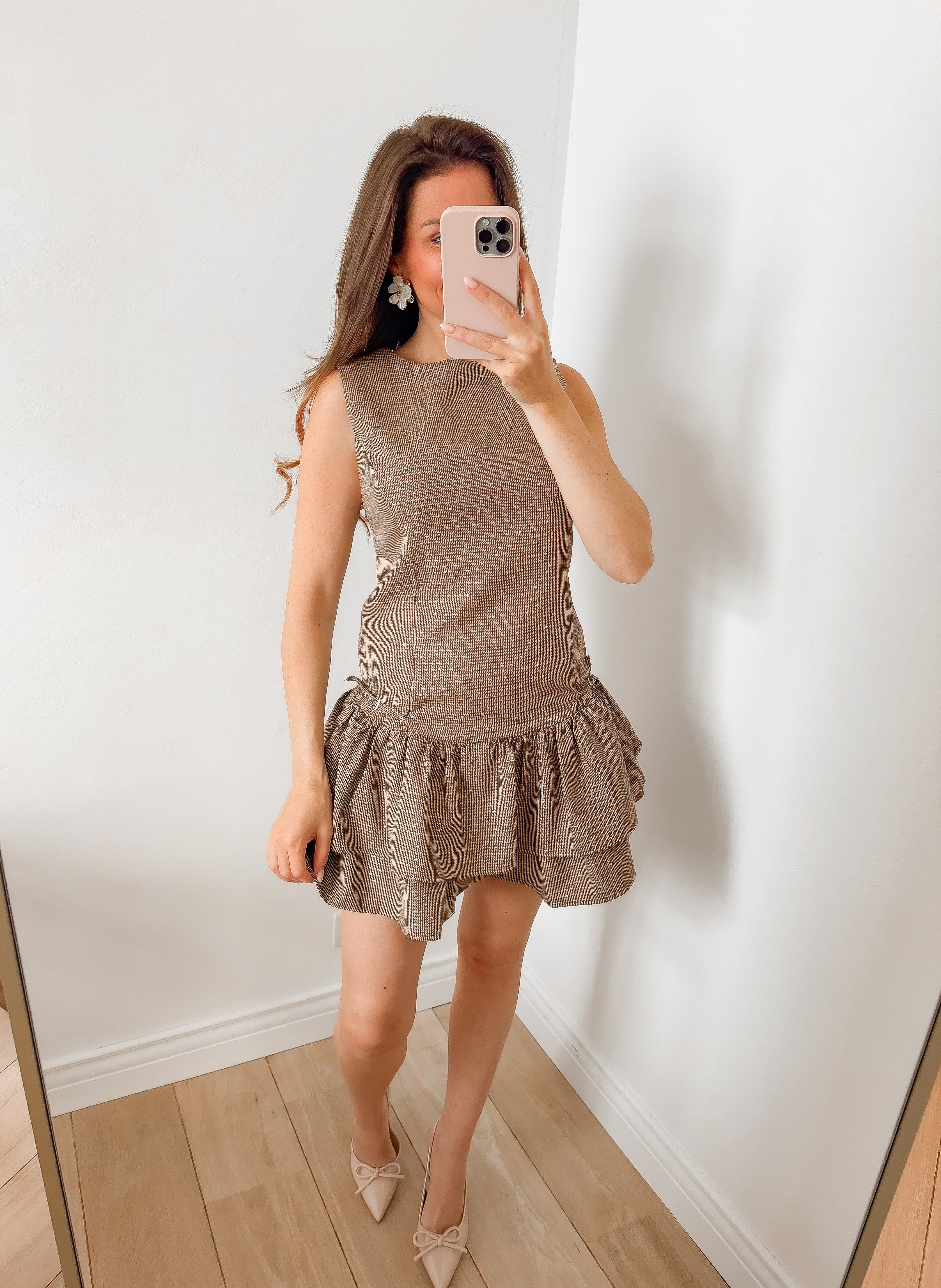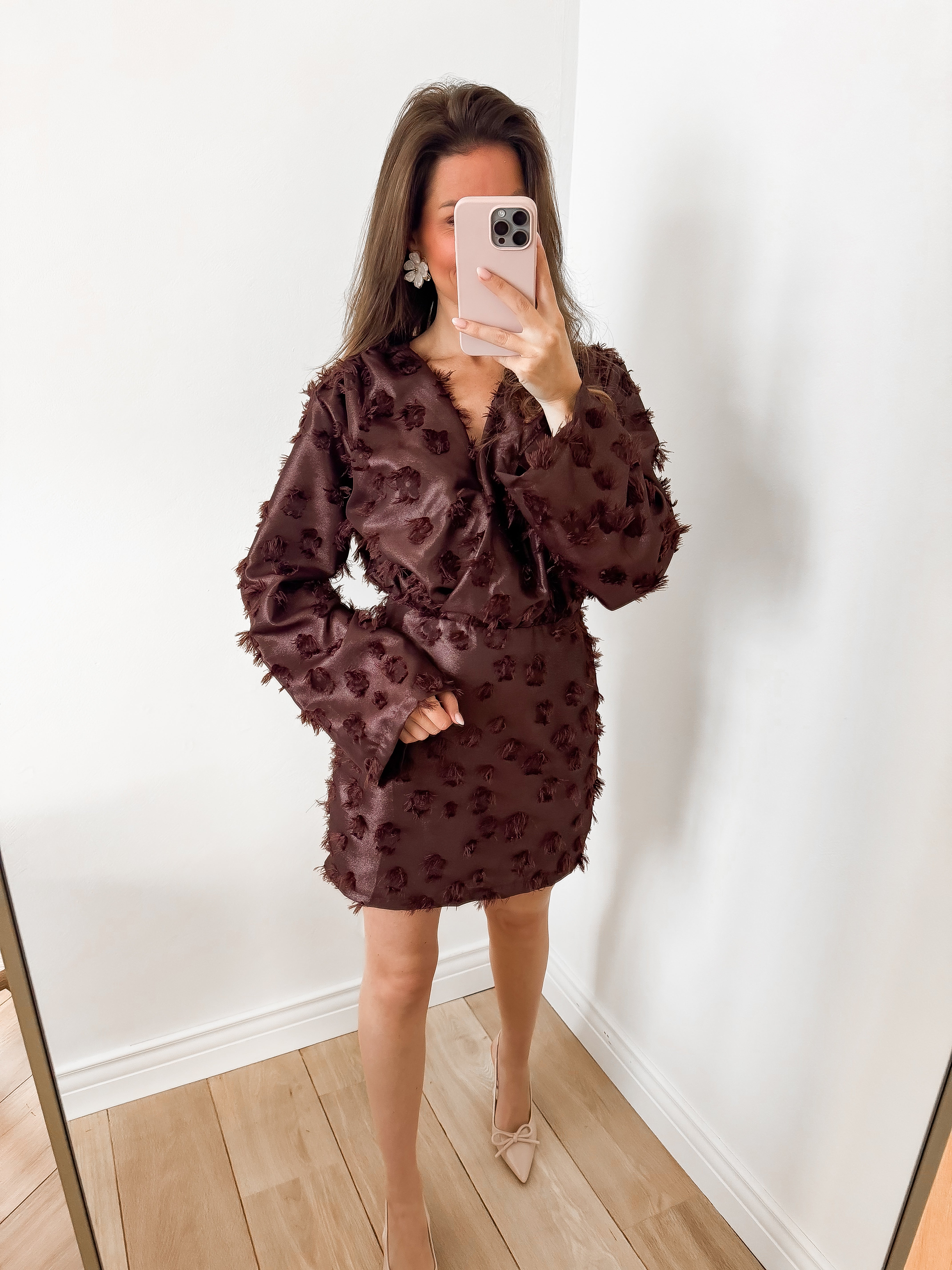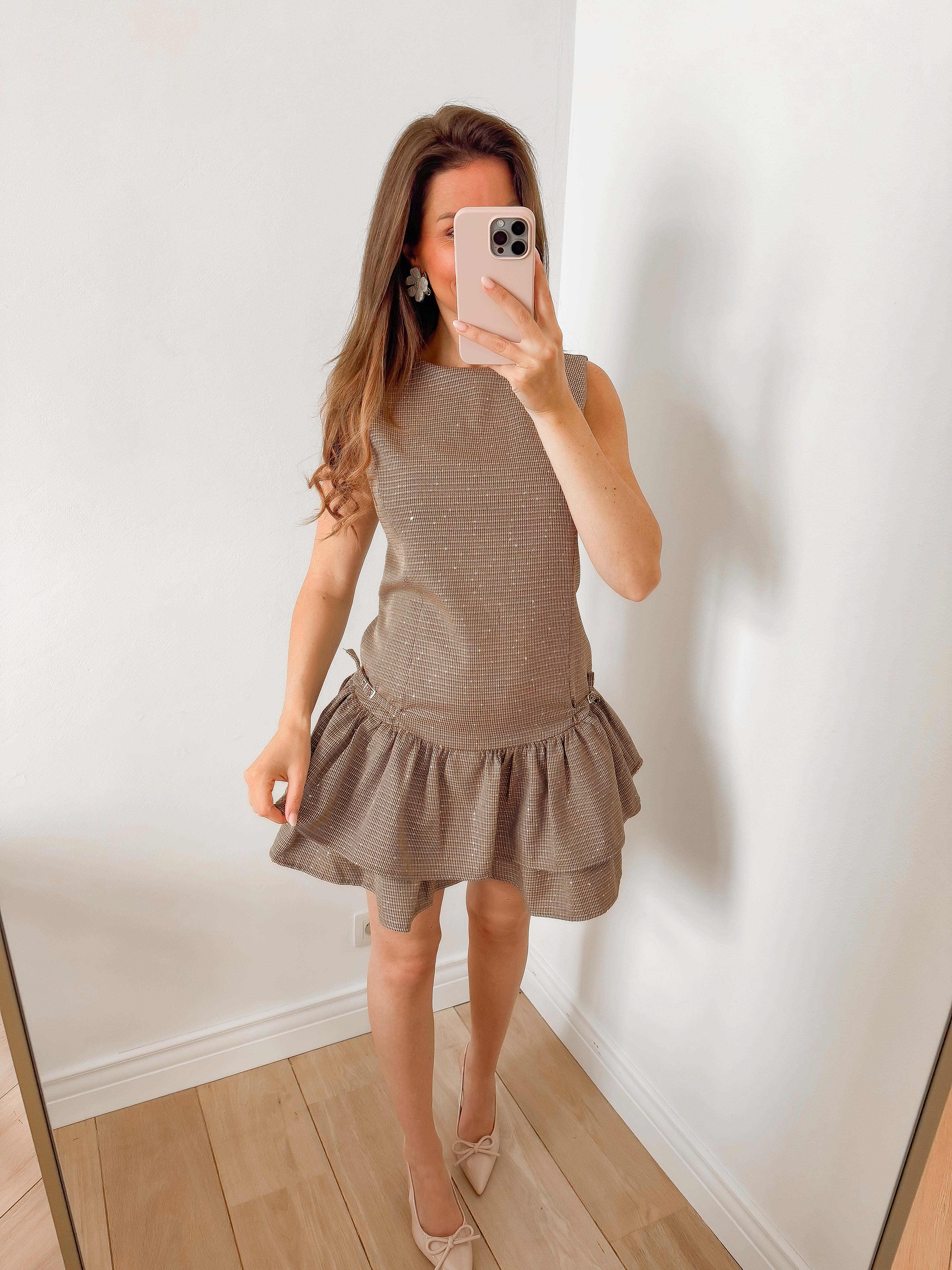 Brown Frill Shiny Dress