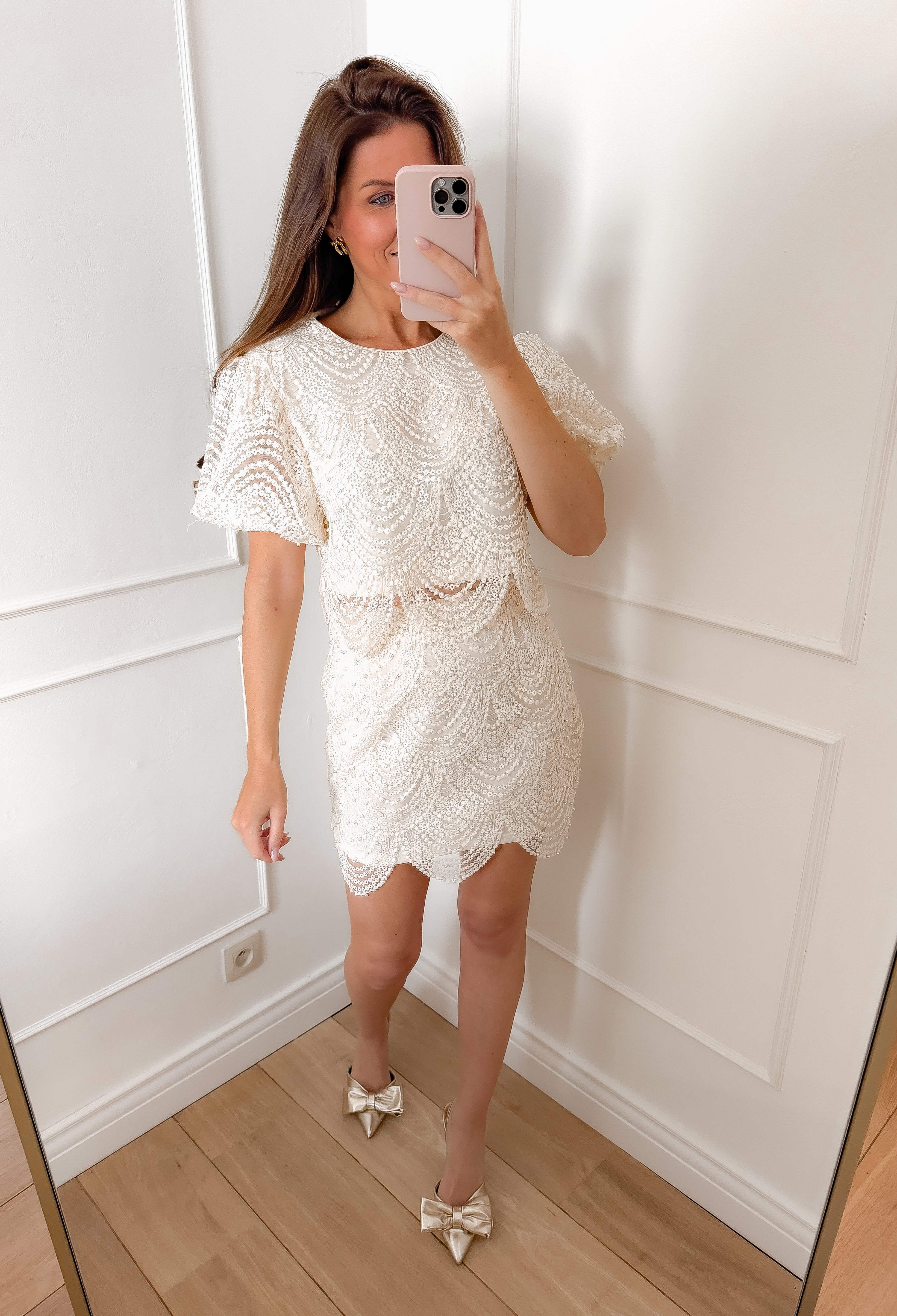 Cream Satin Pearl Dress