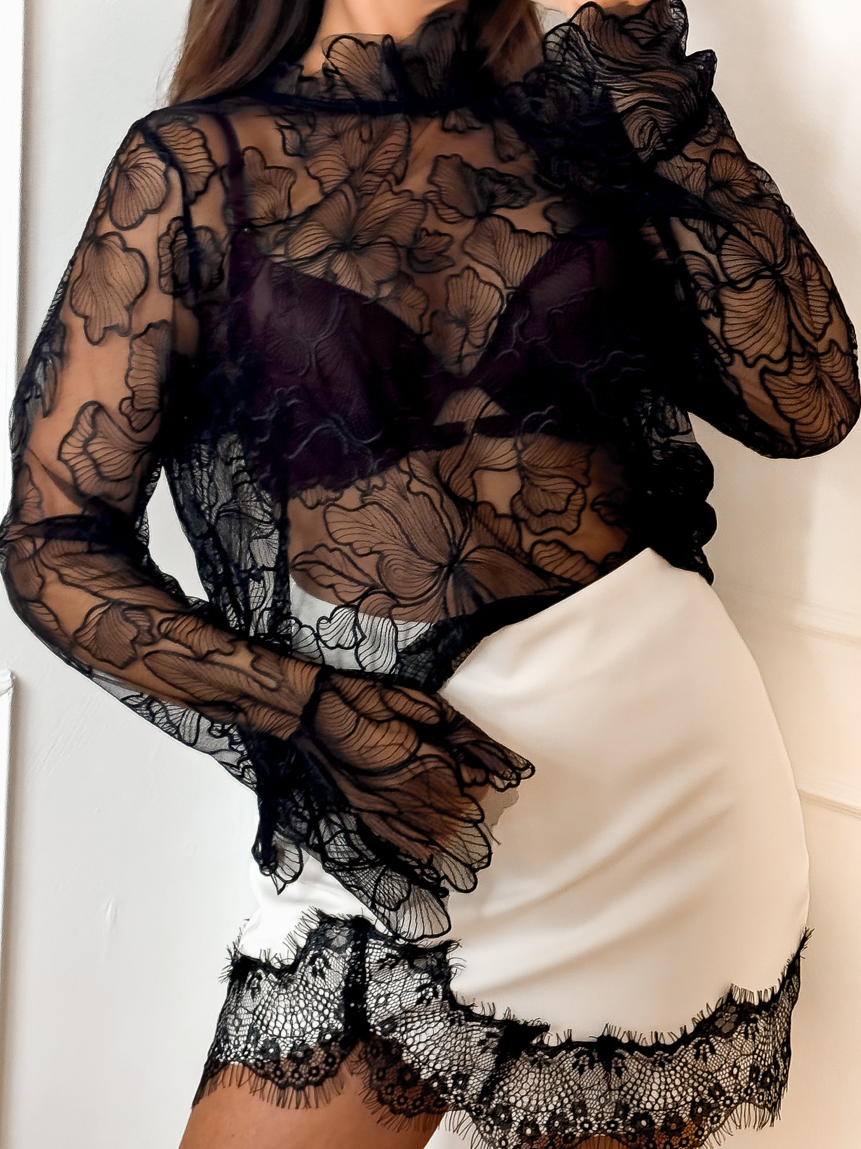 Black Flower Split Blouse