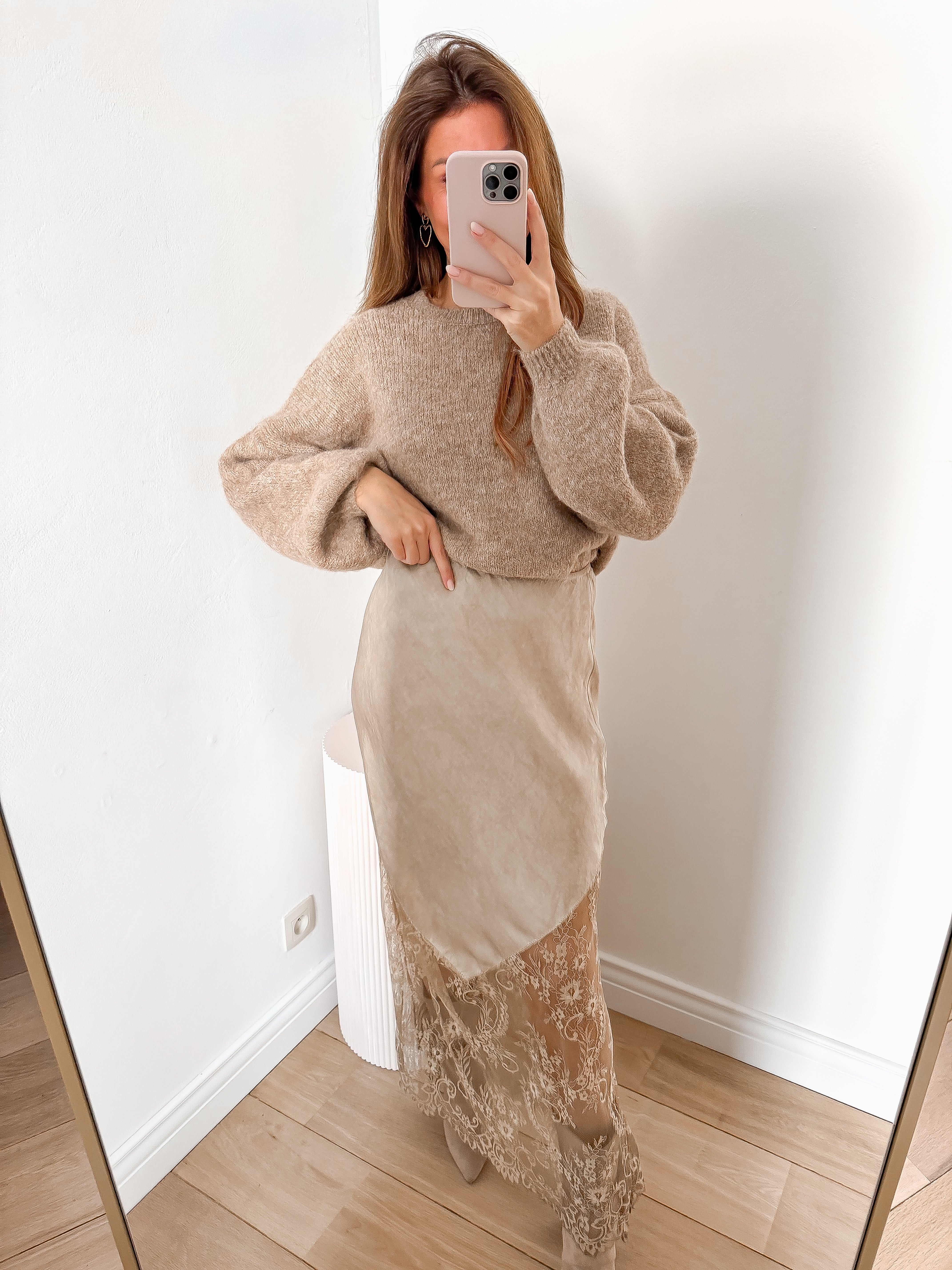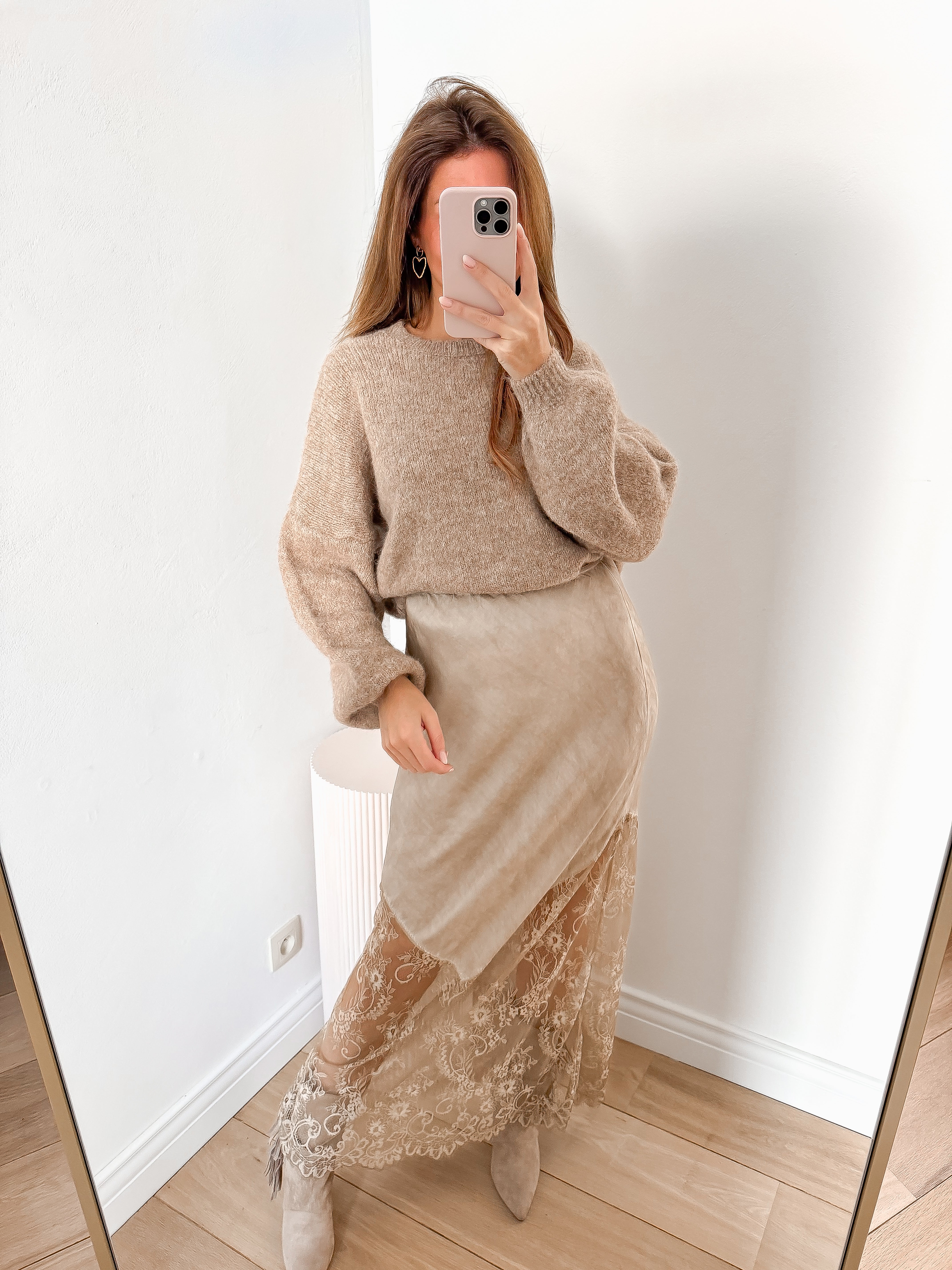 Camel Lace Long Skirt