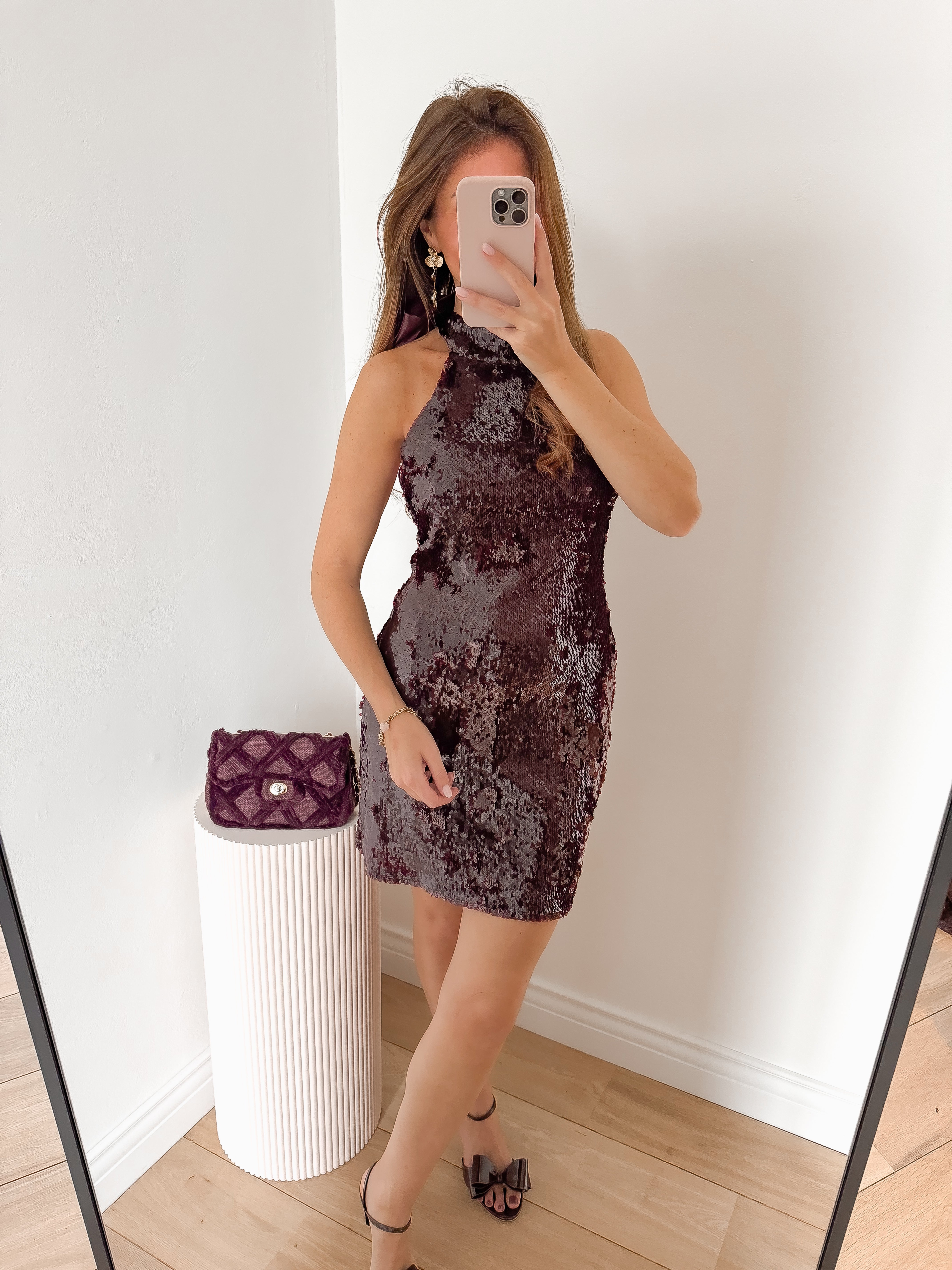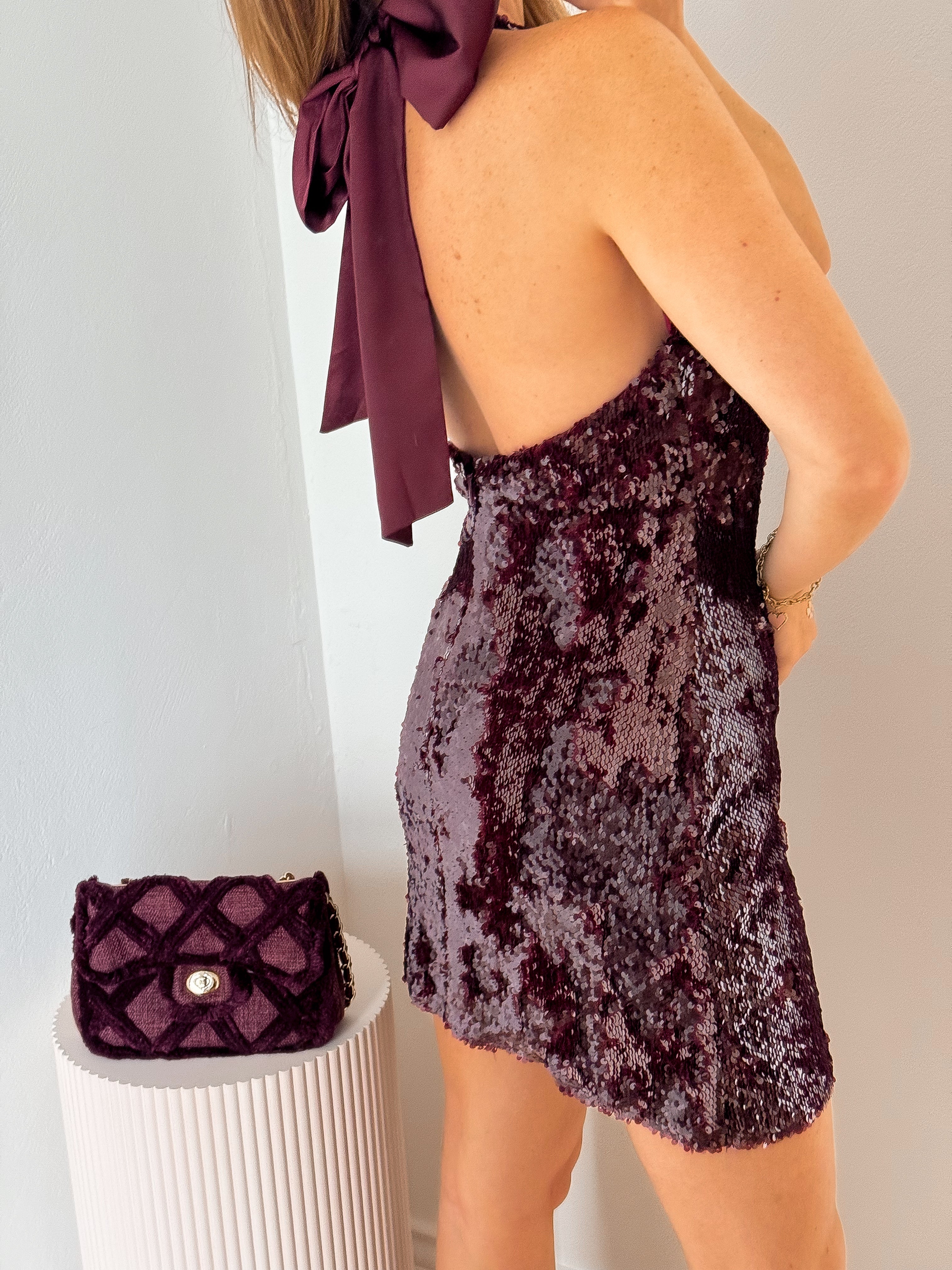 Burgundy Sequin Bow Dress