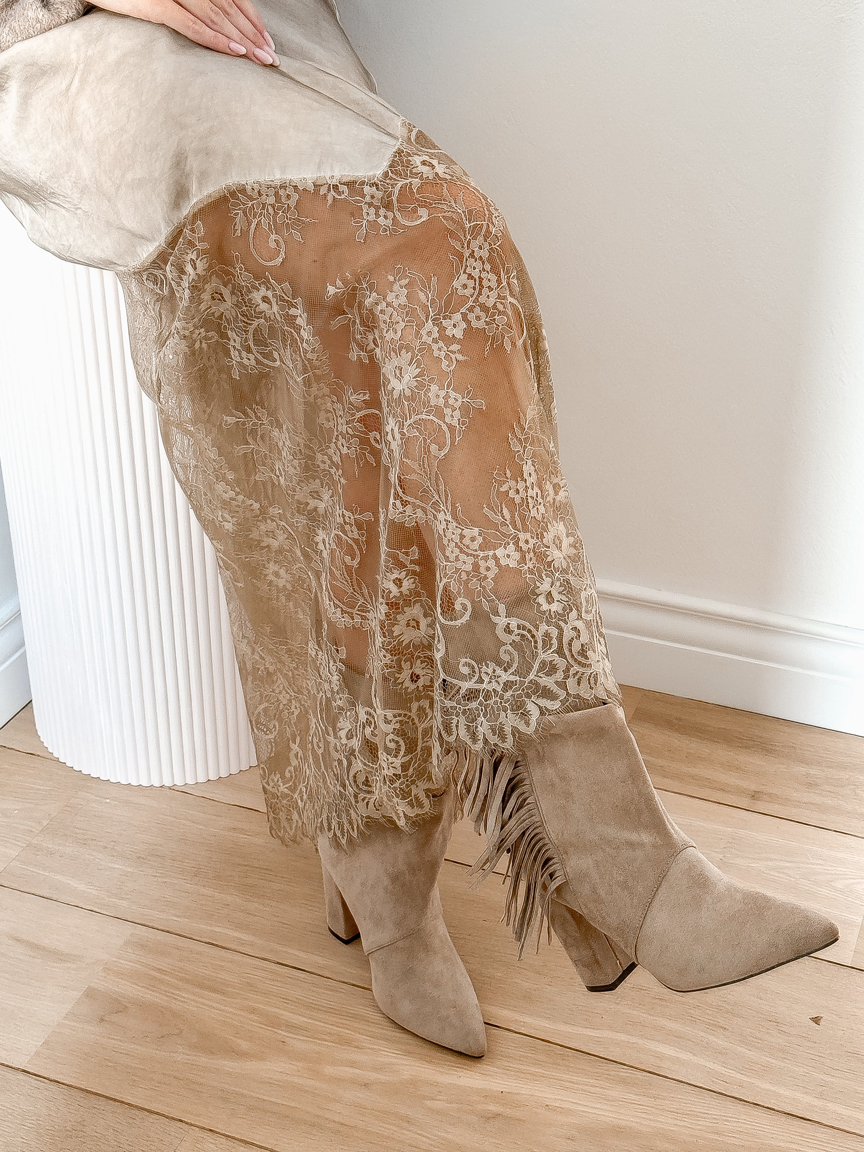 Beige Lace Long Skirt