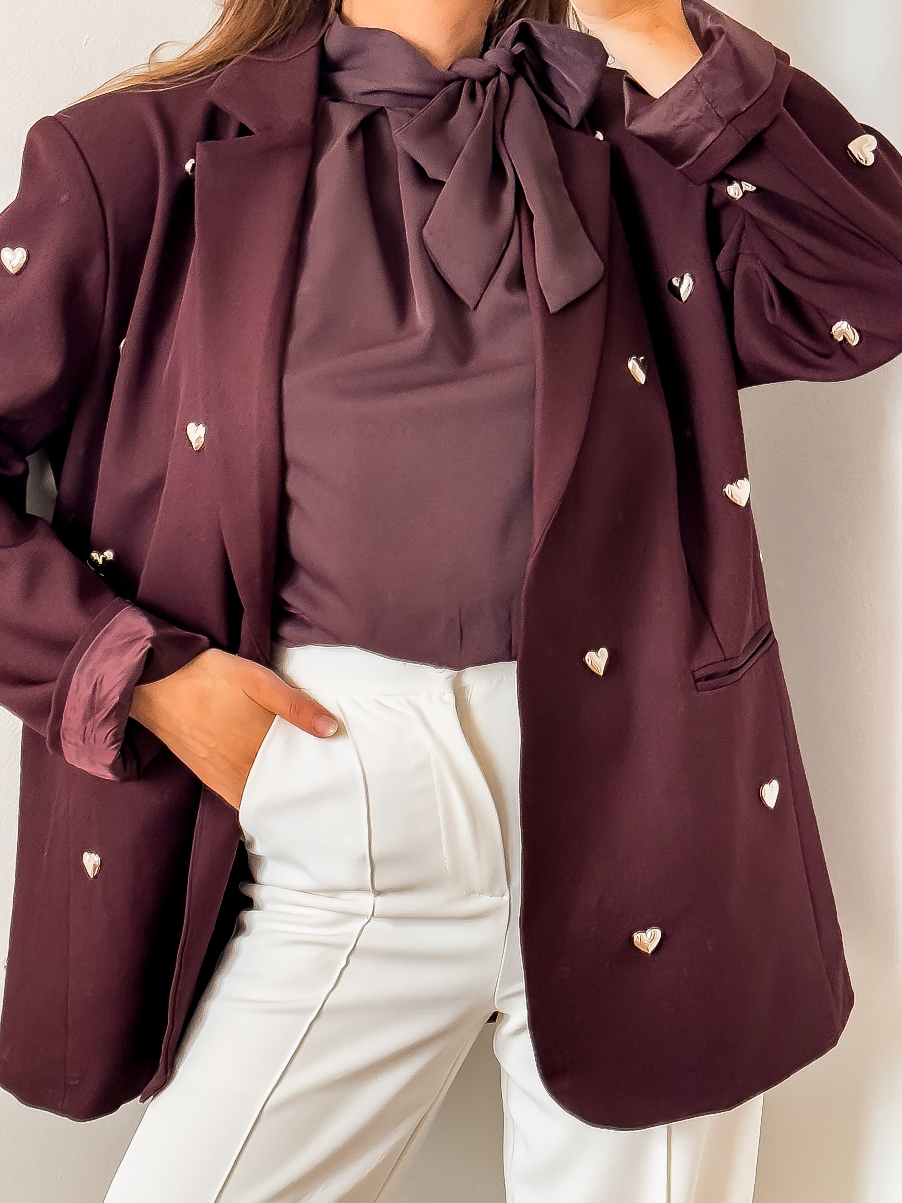 PRE ORDER Burgundy Silver Hearts Blazer