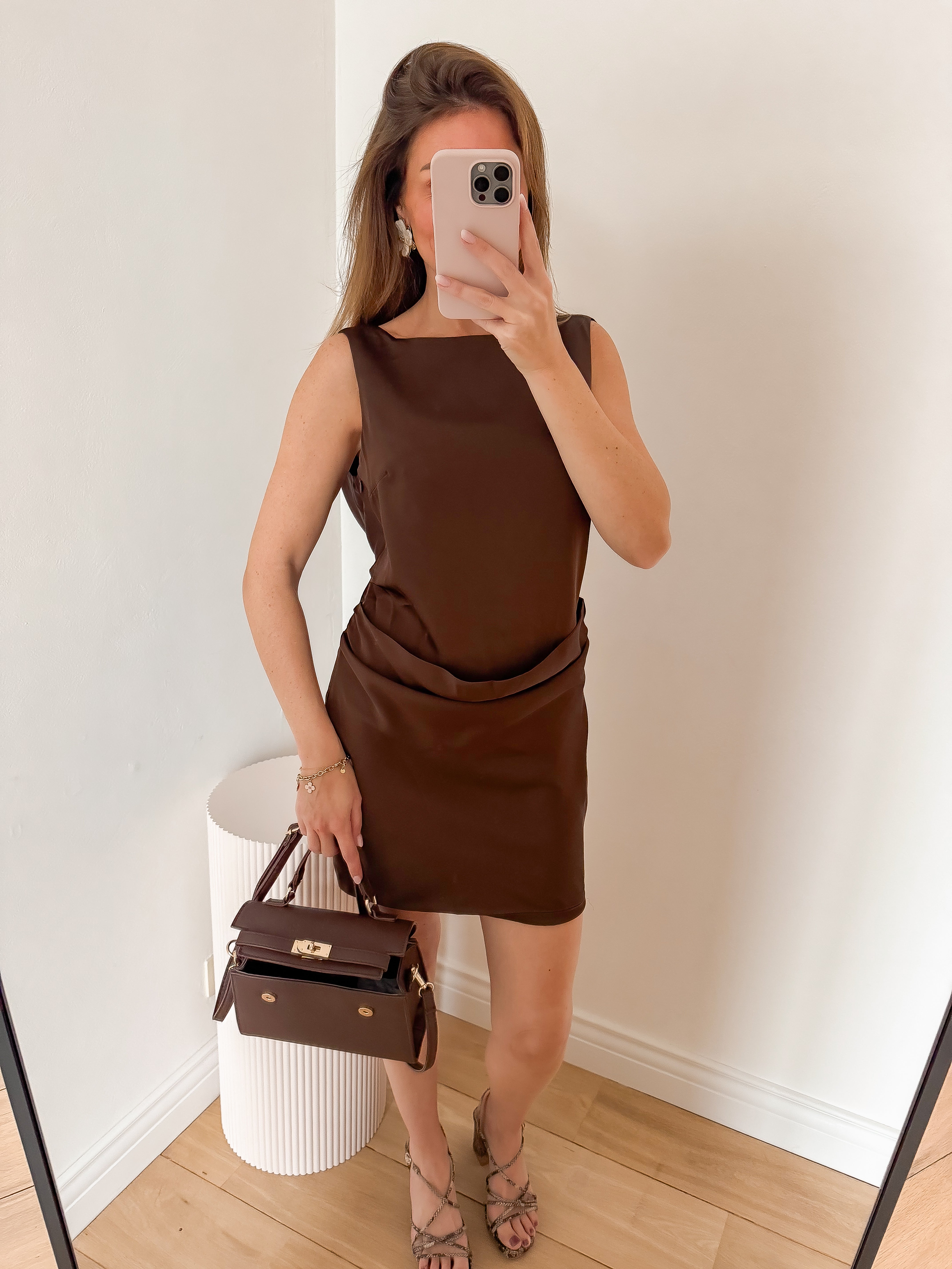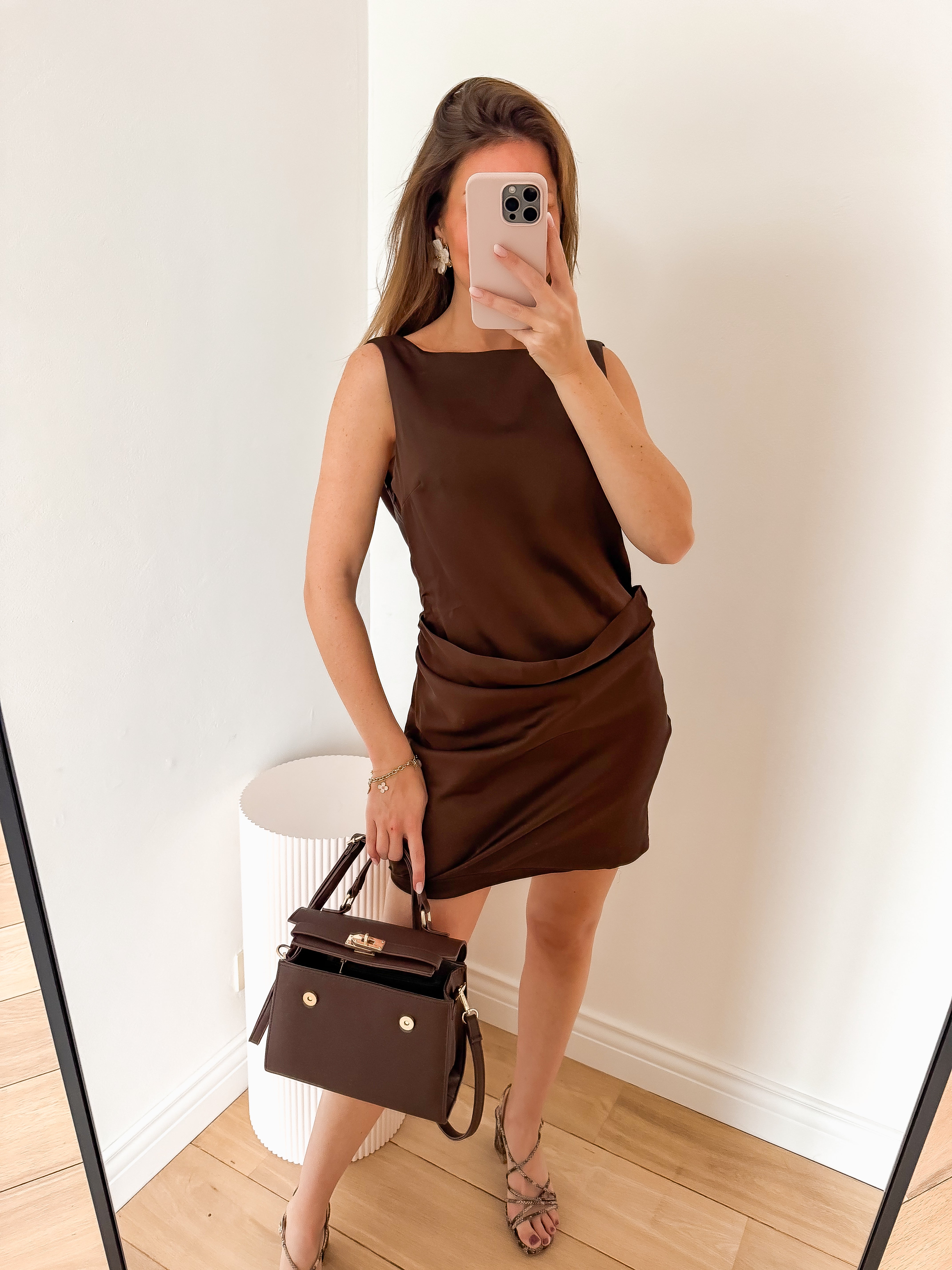 Brown Satin Pearl Dress