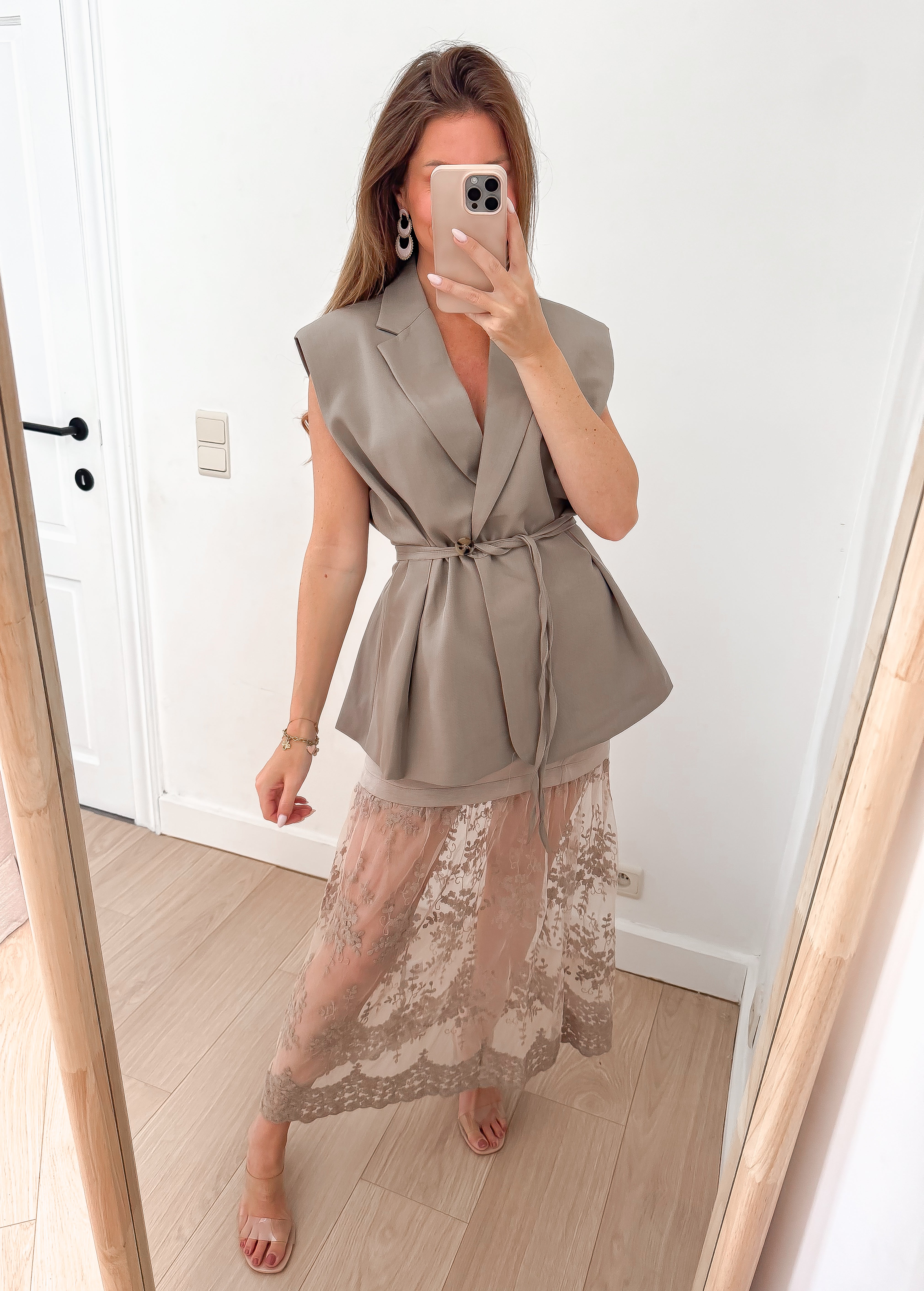 Taupe Lace Long Skirt