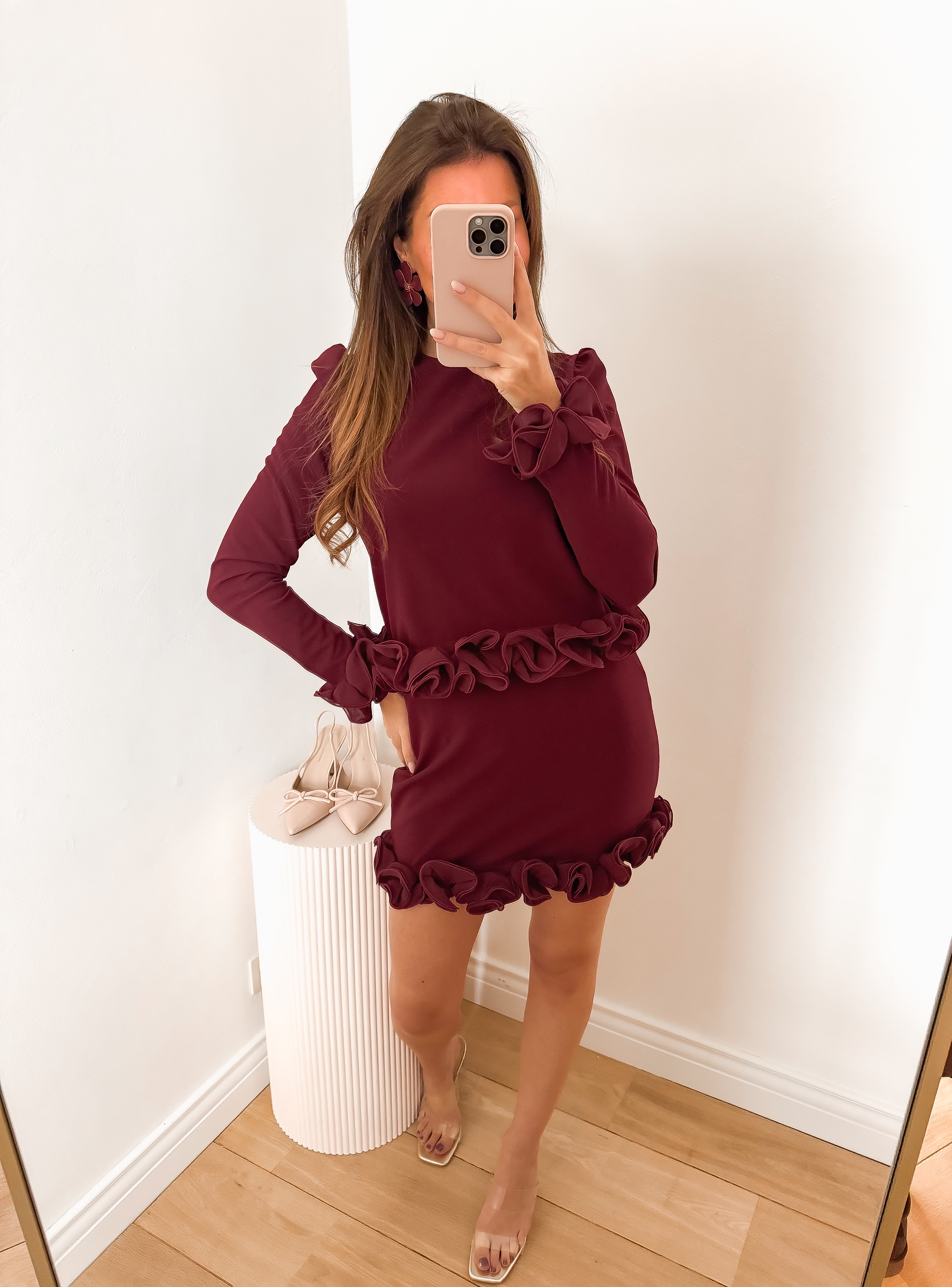 Wine Flower Ruffle Skirt