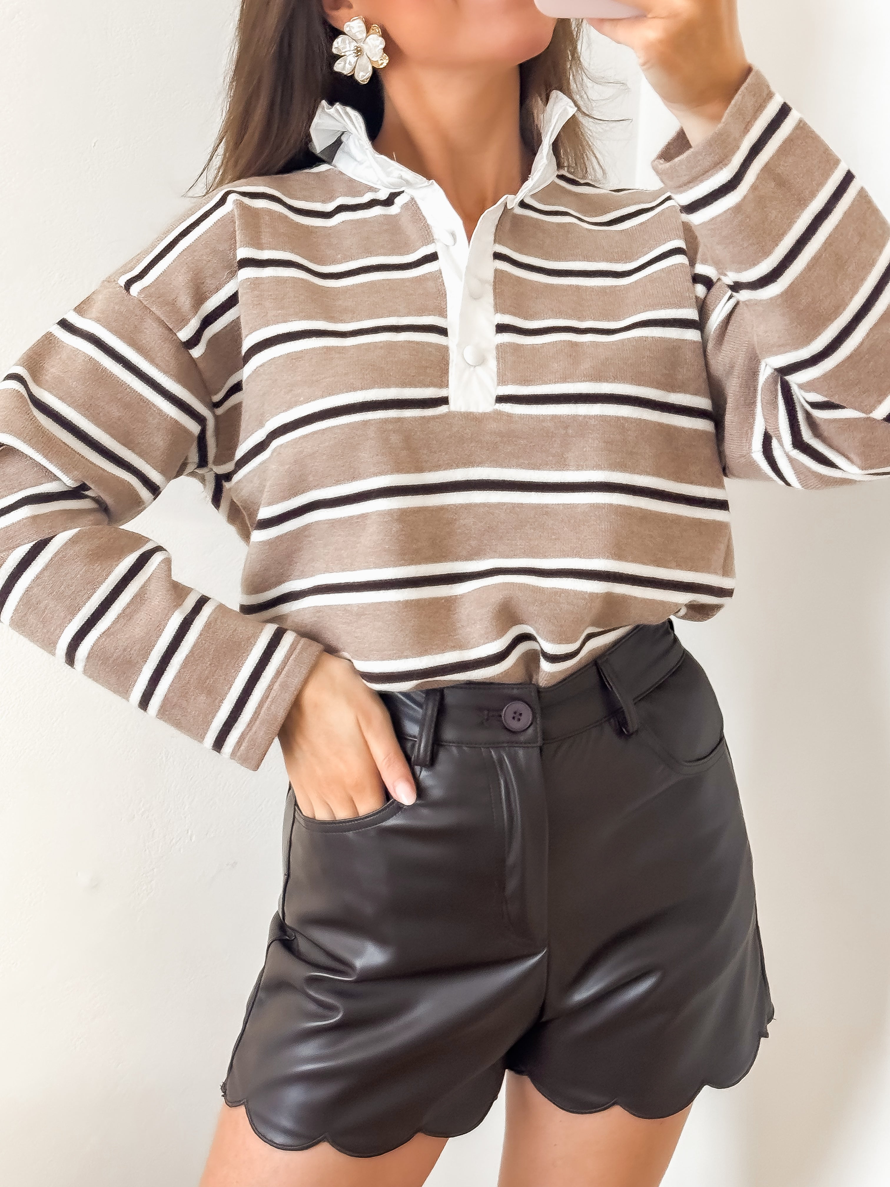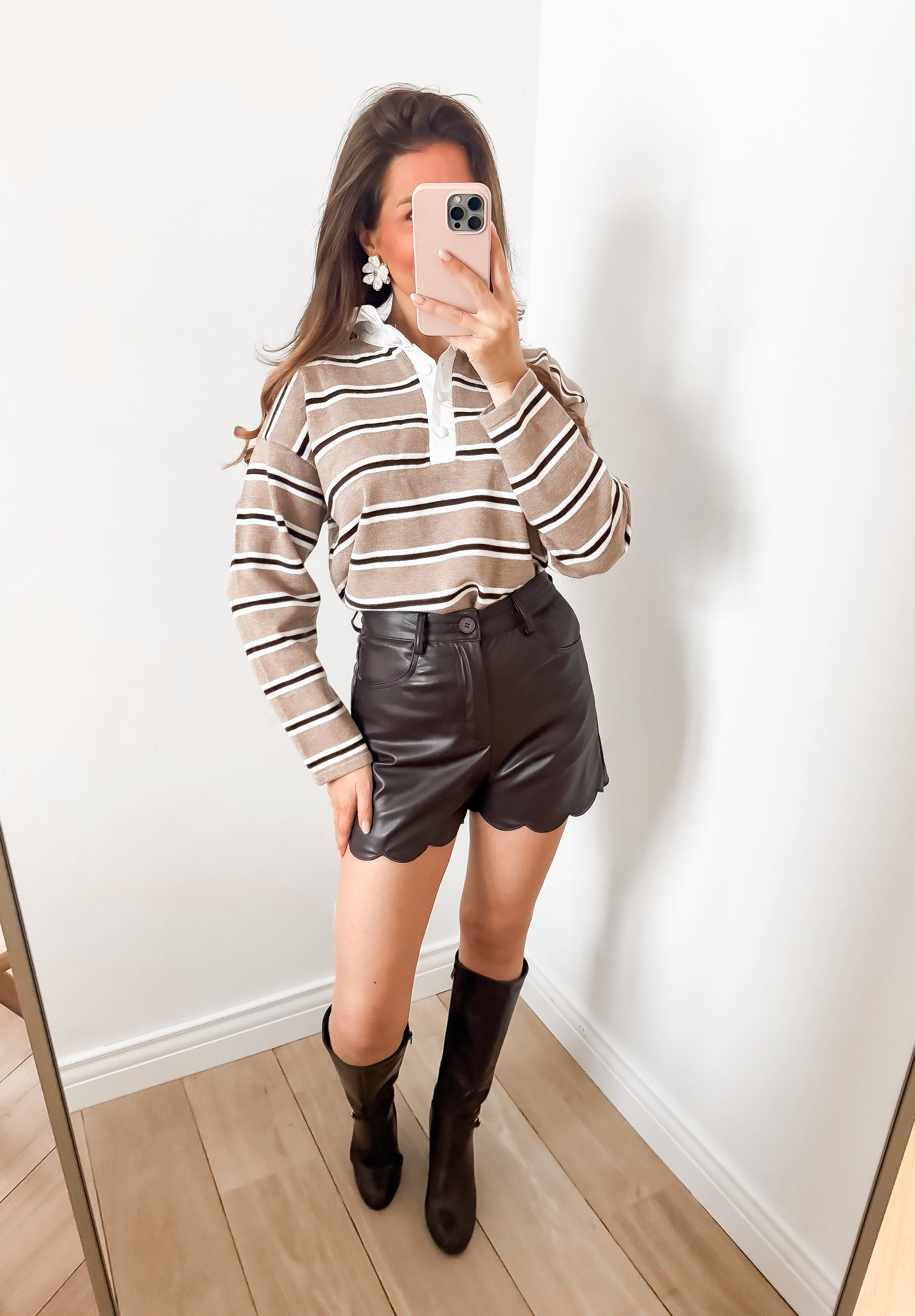Brown Wavy Leather Shorts