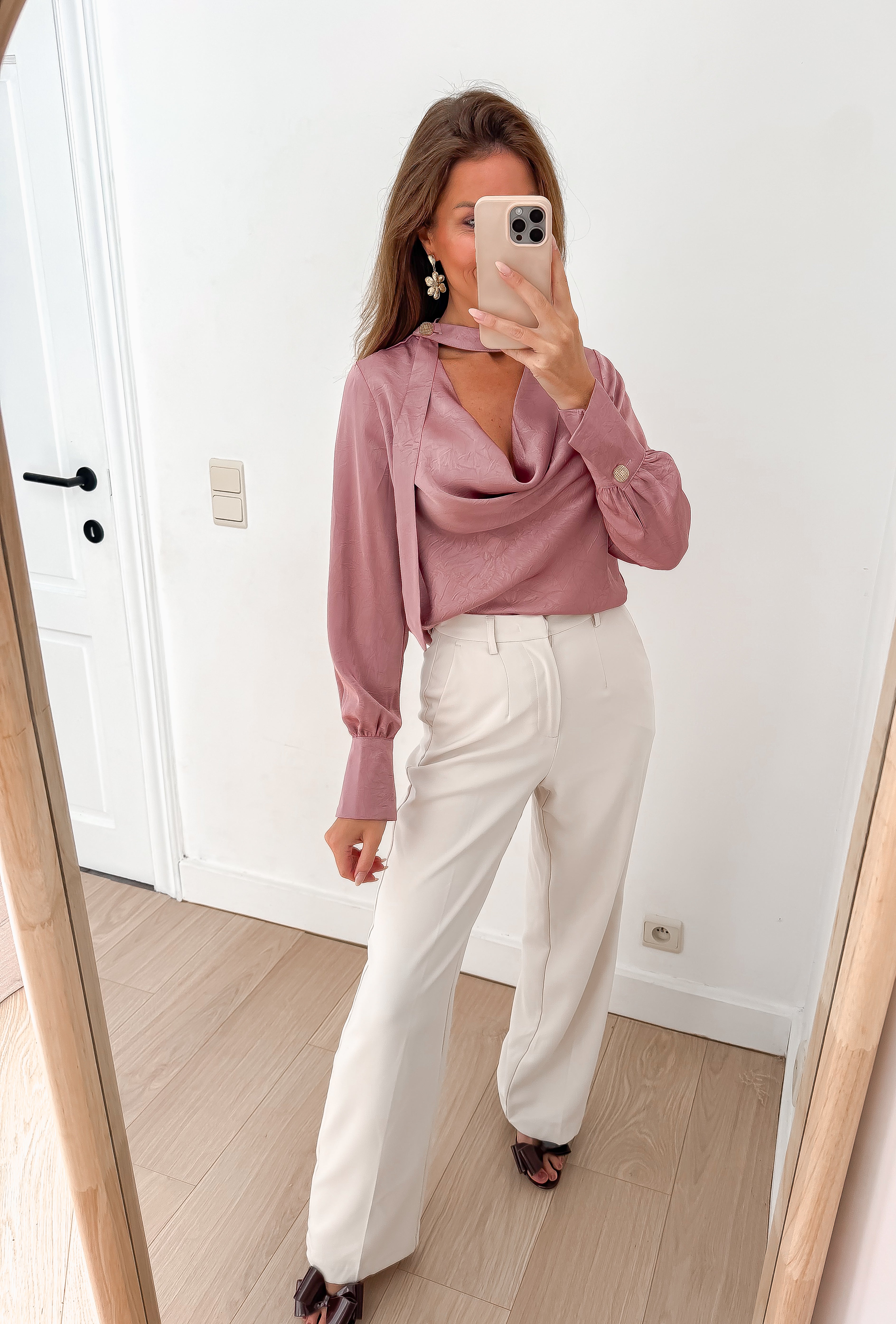 - Mooie sluiting langs de nek met gouden knop