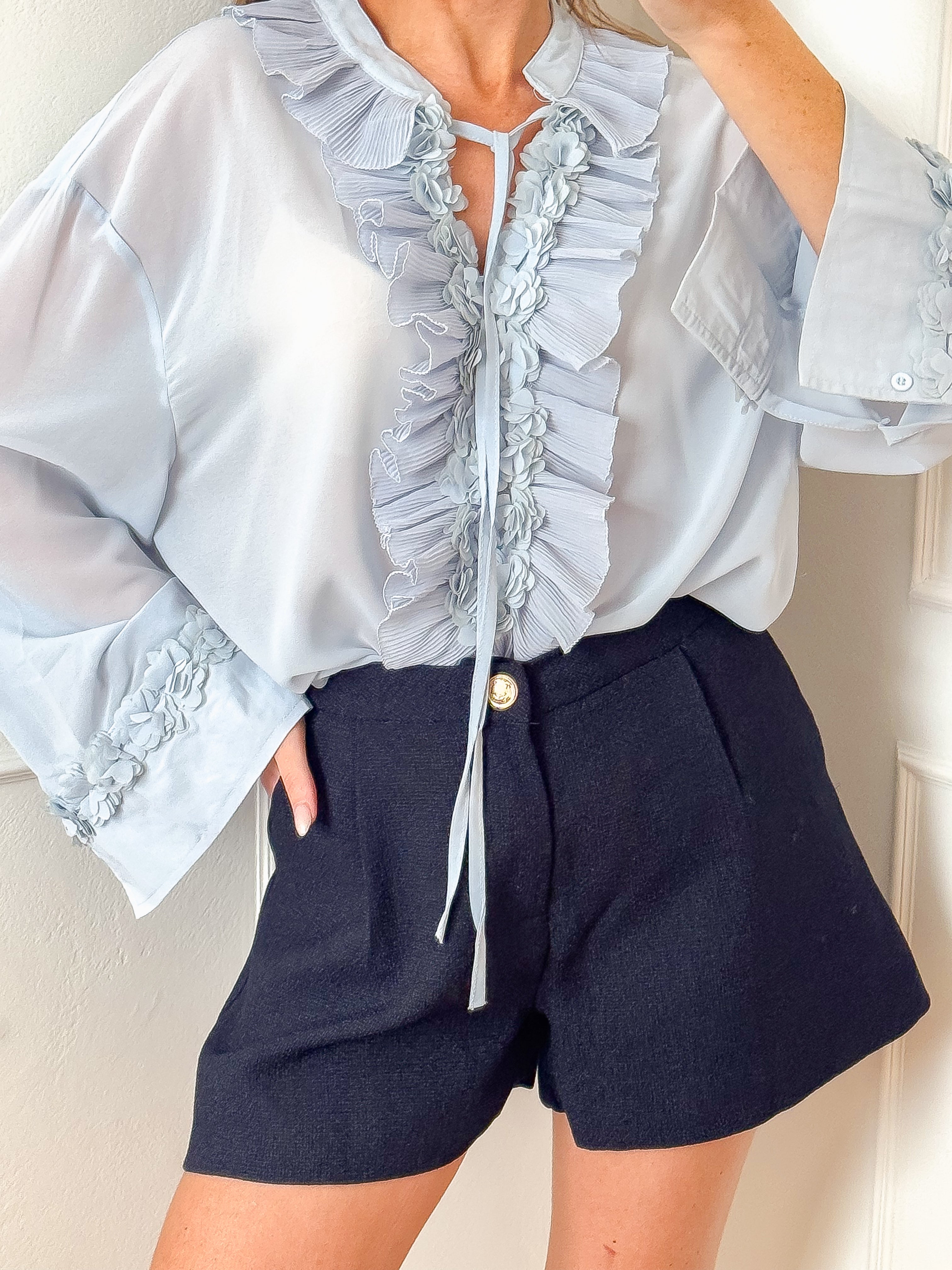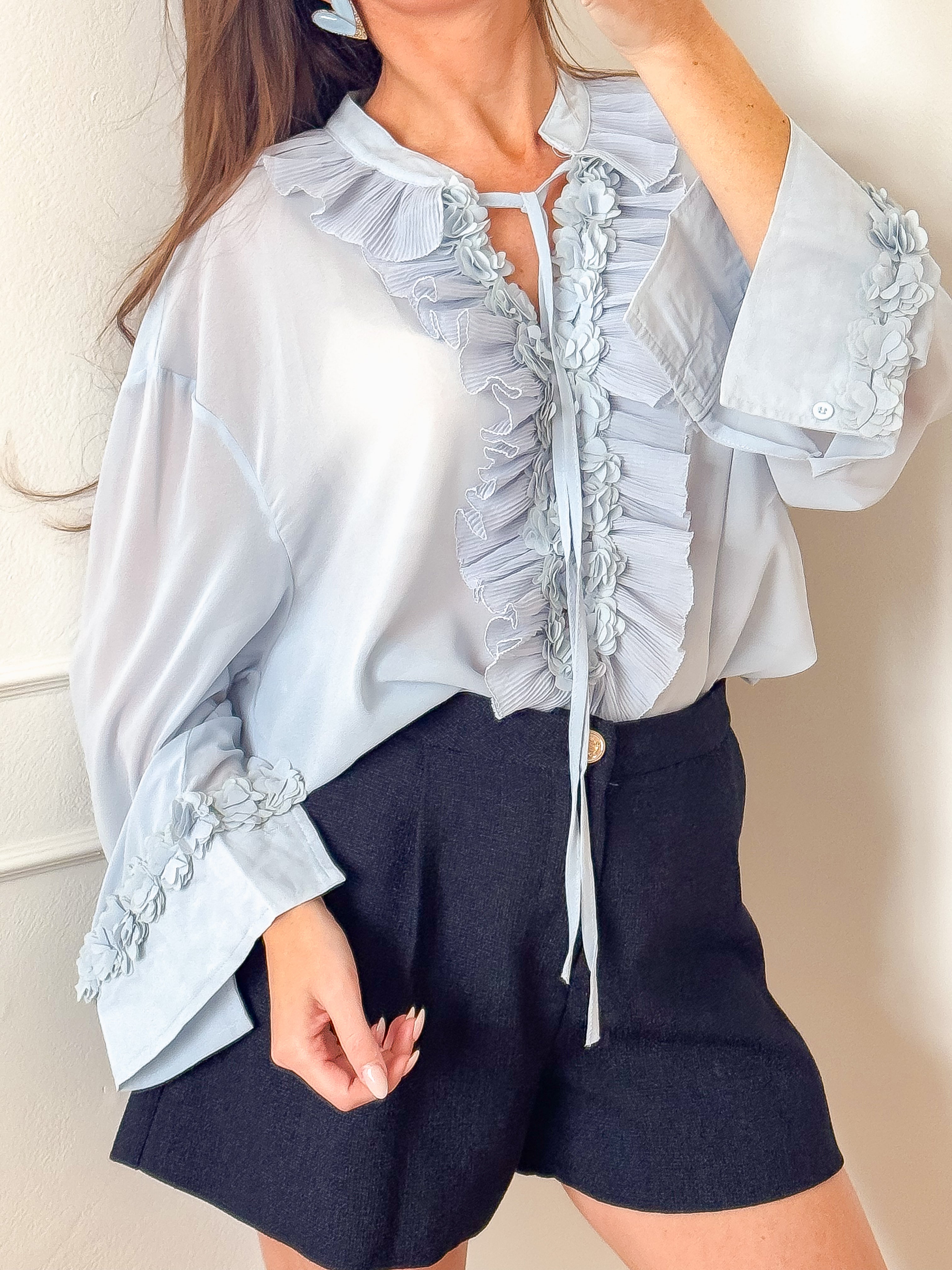 Blue Flower Frill Blouse