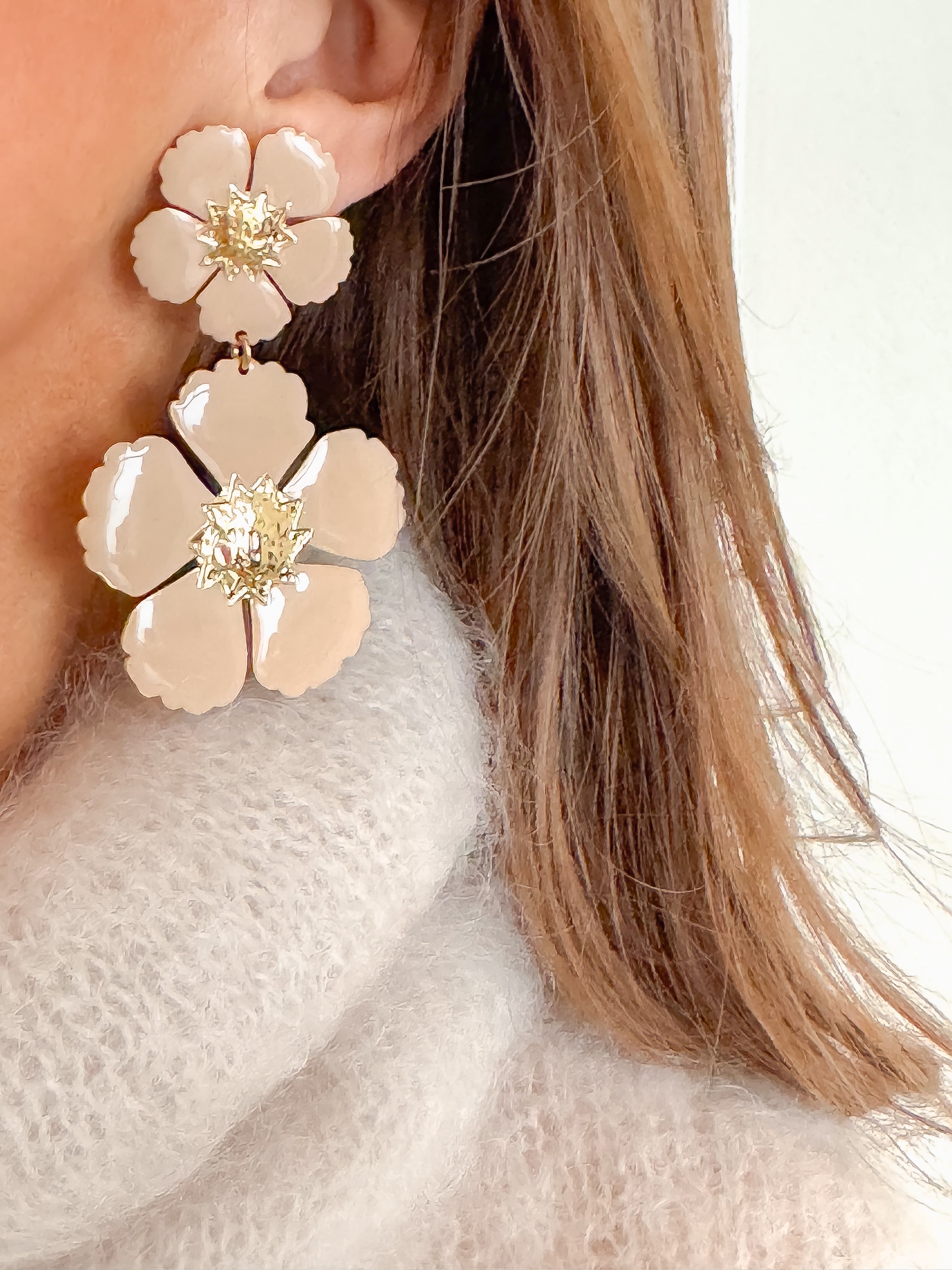 Beige Flower Earrings
