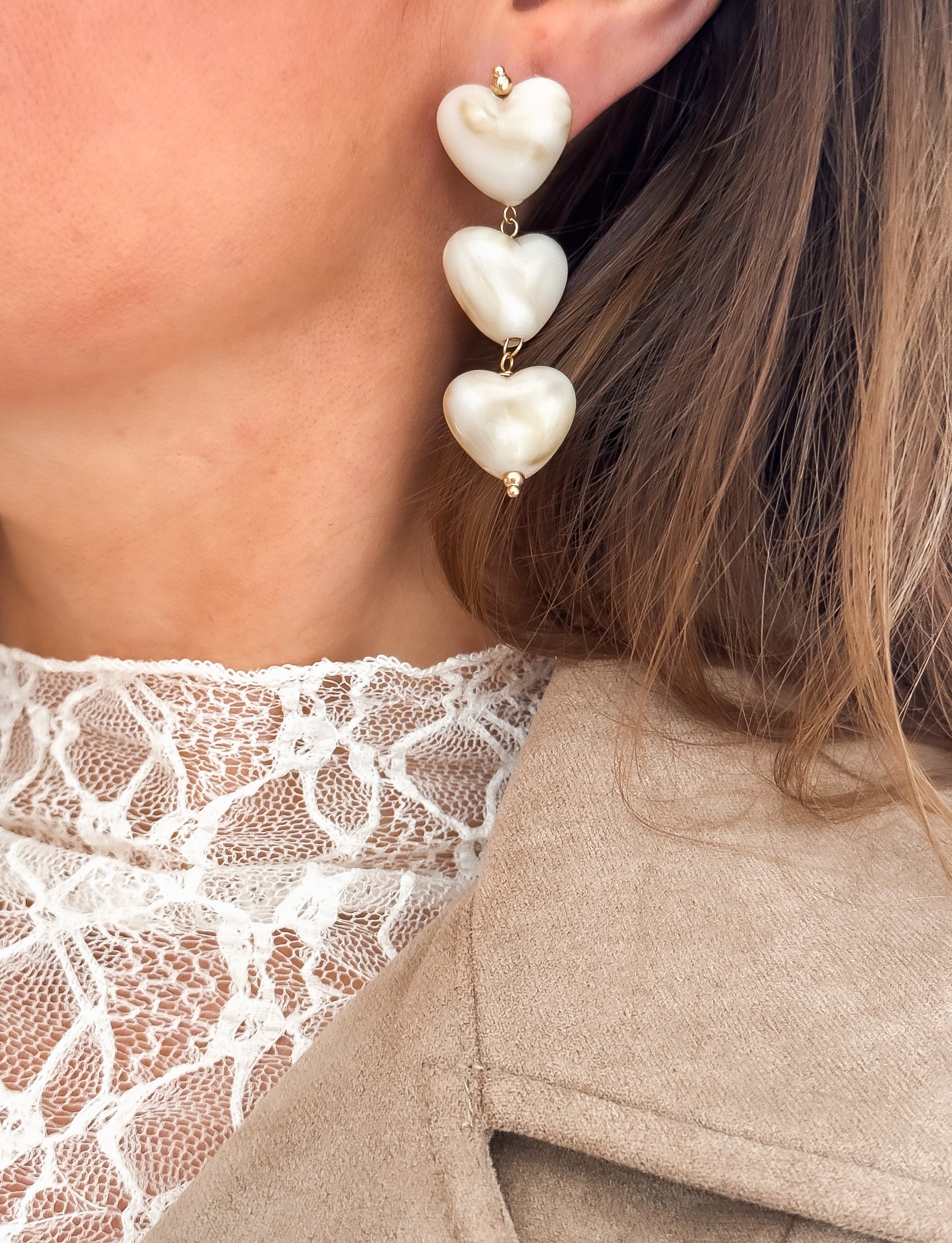 Beige Hearts Earrings